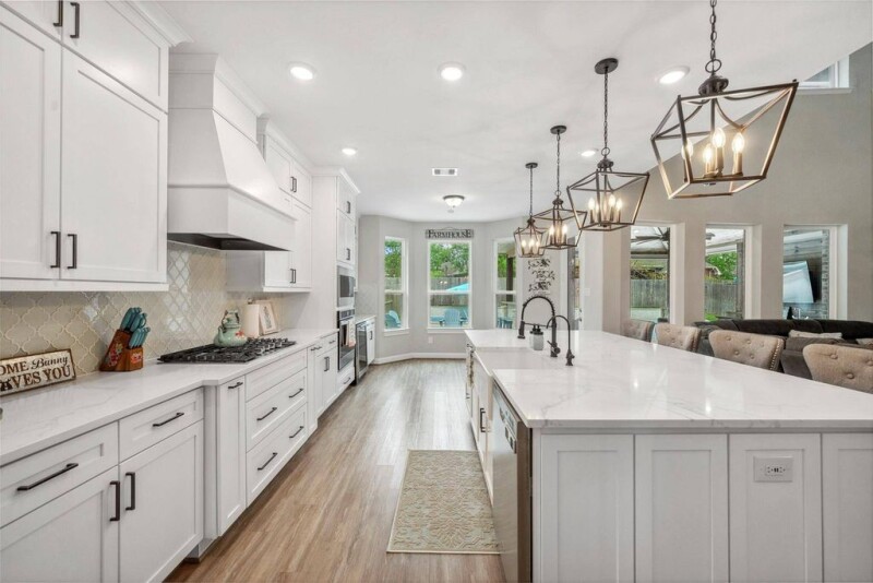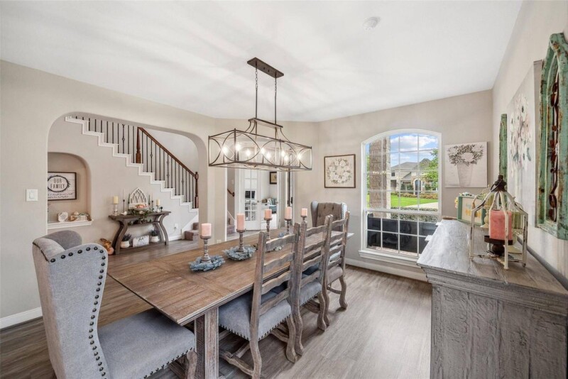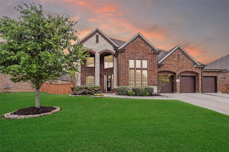 Experience luxury living at its finest in this breathtaking 4-bedroom home in Waters Edge!The spacious main floor features an expansive primary bedroom, a gourmet kitchen that flows into the open-concept living room, a formal dining room,& a private study.Upstairs, you’ll find 3 generously sized bedrooms,2 full baths, plus a media & game room.This meticulously updated home boasts a chef’s kitchen complete w/a gas cooktop, wine cooler,soft-close drawers, quartz countertops &a stunning farmhouse sink. Step outside to your private oasis—a 2023-built pool w/cascading waterfalls, fire pits, a beach landing, & 12-person hot tub.The extended patio features an outdoor kitchen w/bar-top seating area, grill & oversized burner,ideal for dining & entertaining.Equipped w/modern amenities,this home includes security cameras,a whole-home water softener, & energy-efficient foam insulation. A 3-car garage & picturesque water views complete the package. This home truly has it all!.