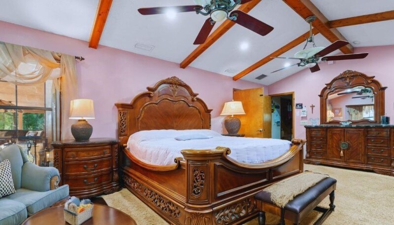 The "Countryside Charmer" offers 3.18 acres of unmatched beauty and opportunity. This 4-bedroom + BONUS ROOM, 2.5-bath home features high ceilings with elegant wooden beams, hardwood tile floors, and a charming red brick wood-burning fireplace. The detached IN-LAW SUITE includes a full bedroom, bath, and kitchen, along with an 8-car garage and 6-carport space—perfect for car enthusiasts! Your private oasis awaits with a luxury pool featuring a heated spa, beach-style entry, serene creek & waterfall. Zoned for AGRICULTURE, this property offers endless possibilities for relaxation, creativity, and minutes from the prestige Equestrian Center. The "Countryside Charmer" is more than a home—it’s a lifestyle of elegance, functionality, with room to build one more structure! Will not last!.