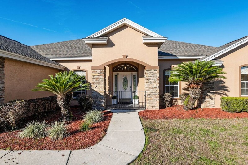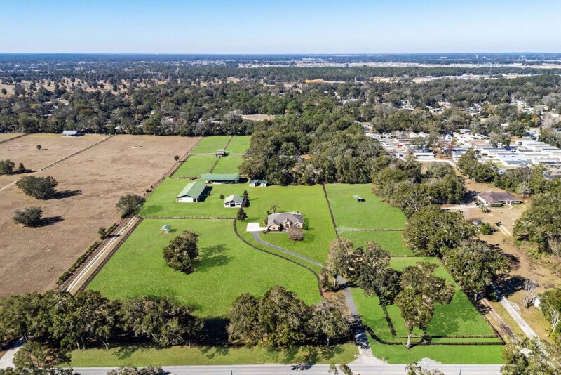 Beautiful turnkey horse farm in the horse capital of the world. In the heart of Ocala, this stunning five-bedroom, three-bath horse farm is a gem. Just minutes from scenic Florida Greenway Trails and the Florida Horse Park, this property offers a combination of luxury living and world-class equestrian facilities. Only 25 minutes to The World Equestrian Center and 30 minutes to HITS, this farm is ideally situated for serious equestrians. The farm features two gated entrances for security and privacy, with the main gate leading up a beautifully paved driveway to the well-maintained home, built in 2002. The 5/3 triple-split floor plan offers over 2,600 square feet of living space, including fresh interior paint, gorgeous hardwood floors, a cozy fireplace and a spacious kitchen with elegant granite countertops. The owner's suite is a retreat with two custom walk-in closets and a spa-like bath featuring a Jacuzzi tub and separate shower. Equestrian facilities on this property are second to none with 18 stalls total between two barns, including a tack room, feed room and multiple wash racks. Four additional paddock stalls for added versatility. A 60-foot covered and irrigated concrete block round pen for year-round training, no matter the weather. Separate equipment shed for tools, shavings and extra storage. Eight generously sized paddocks for turnout and grazing. This property provides everything needed for the professional trainer and passionate horse lover, with top-tier amenities and easy access to all the best equestrian events and facilities in the area. Whether you're training, showing or simply enjoying life with your horses, this turnkey farm offers the ultimate equestrian lifestyle in one of the desirable locations in the world.