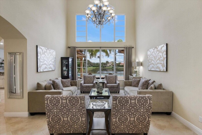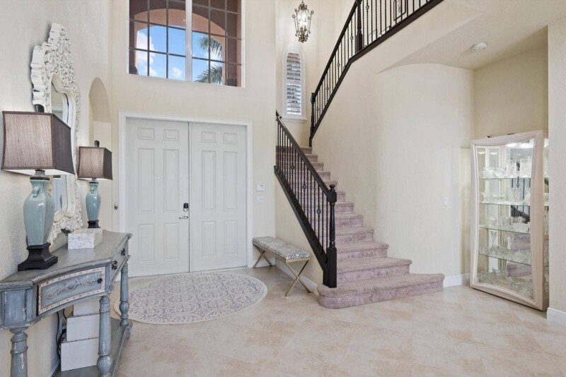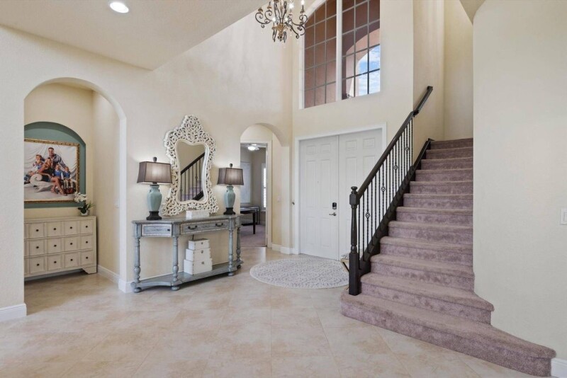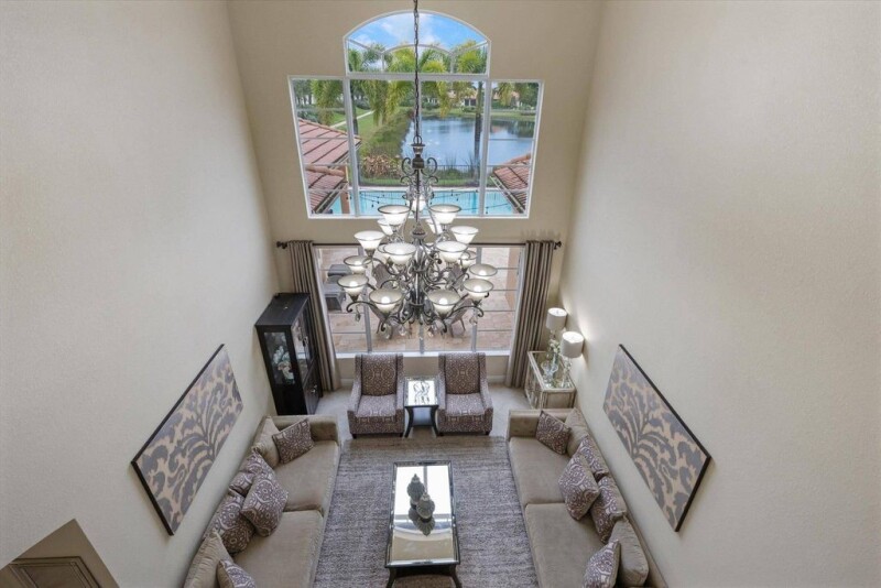 Experience breathtaking views in this highly sought-after and rarely available Stonegate Model. With six spacious bedrooms and elegant living areas filled with natural light, this home is designed for both comfort and sophistication. Dramatic 25-foot floor-to-ceiling windows create a grand ambiance, while generous living and workspaces provide an exceptional lifestyle.The first-floor primary suite is a true retreat, featuring private access to the pool patio, two walk-in closets, a jetted whirlpool tub, and separate vanities. Two additional main-level bedrooms offer custom plantation shutters and are complemented by two full bathrooms, providing convenience and privacy. Upstairs, a spacious loft awaits, perfect for entertainment, work, or quiet relaxation, along with three additional.