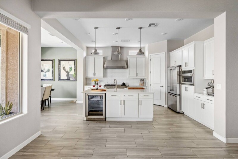 Discover the perfect blend of modern elegance and practical living in this exquisite Lennar NextGen home. Built in 2019, this thoughtfully designed home is ideal for multi-generational living, hosting guests, or generating rental income—all while maintaining privacy and autonomy. From the moment you arrive, the private courtyard w/ a tranquil water feature welcomes you into a space where sophistication meets comfort. Inside, you'll find porcelain tile flooring throughout, white shaker cabinetry, quartz countertops, a subway tile backsplash and custom pendant lights. The gourmet chef's kitchen is a true showpiece, boasting top-of-the-line Monogram stainless steel appliances, a center island, and stylish open-concept design. The sprawling main living area seamlessly connects to the dining space and kitchen, fostering an inviting atmosphere for gatherings. Dual sliding glass doors flood the home with natural light and provide effortless indoor-outdoor living.The primary suite is a sanctuary of its own, featuring dual walk-in closets, a spa-like en-suite bathroom w/ a spacious walk-in shower, and private backyard access. Step outside to a resort-inspired backyard, where a heated pool and spa create the ultimate retreat. The spa overflows into the pool, enhancing the serene ambiance w/ stack stone accents and a beautiful stone walkway. Gas fire features add a touch of warmth and elegance to evening gatherings, while lush palms, astroturf, raised planter boxes, and a fenced garden with irrigation elevate the outdoor experience. Designed for ultimate flexibility, the NextGen suite offers its own private entry and backyard. Take advantage of a full kitchen w/ white shaker cabinetry, GE stainless steel appliance package, in-unit stackable washer & dryer, a full bathroom, and attached 1-car garage w/ direct access. Whether used for extended family, long-term guests, or rental income, this home is not to be missed!.
