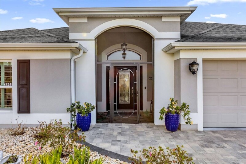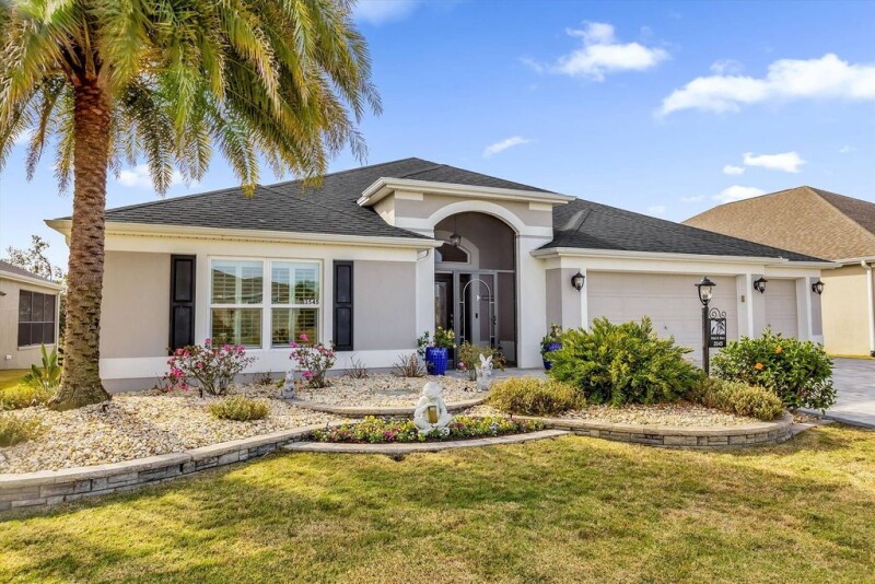 Welcome to your luxury dream home in the exclusive area of The Village of Pine Hills. This custom Zinnia home with new roof in February 2025 boasts 2570 square feet, has three bedrooms and 3.5 baths in a prime location on the stunning Sharon Rose Wiechens Preserve. This preserve has fresh water, rare in The Villages. Wake up every morning to elevated panoramic views of nature's finest creatures, including soaring eagles, hawks, cranes, ducks and turtles to name a few, all from the comfort of your lanai. As you approach this luxurious property, you will be impressed by the paver driveway and walkway that lead to a beautifully screened-in entryway with a lead glass door and side panels. Be greeted by gorgeous engineered hardwood flooring that sets the tone for an open-concept living room and dining room, ideal for entertaining guests or simply relaxing with family. The heart of this home lies in its exquisite kitchen featuring granite countertops, designer tile backsplash, appliance garage, built-in wall oven and microwave, cooktop stove, stainless steel appliances and breakfast nook adorned with charming wainscoting. Custom lighting and crown molding throughout adds an extra touch of elegance. Retreat to your owner's suite where you can indulge in peaceful views of the preserve through large windows. The expanded en-suite bath boasts a double vanity with plenty of storage space, a deep soaker tub for ultimate relaxation, a Roman shower and an oversized organized walk-in closet. For added privacy for guests or family members staying over, there is a pocket door in the hallway leading to two bedrooms, a spacious second bedroom with its private en-suite bath and walk-in closet. The third bedroom is also generously sized and shares access to the main bath. This stunning property boasts an expanded custom lanai with hurricane-glass floor-to-ceiling sliders and transom windows, offering unparalleled panoramic views of the beautiful Sharon Rose Wiechens Preserve. Wake up to breathtaking sunrises as you enjoy your morning coffee from the left side of the lanai, and wind down with a glass of your favorite adult beverage while watching the sunset on the right. The lanai also features a chic shiplap accent wall that complements the oversized TV and electric fireplace. And for added comfort, luxurious custom remote shades are included. Also, have a large patio ideal for grilling and enjoying the outdoors. But that's not all, this home has even more impressive features. A custom laundry room complete with a utility sink, oversized pantry, and cabinets for additional storage will make doing chores feel less like a chore. And you won't find this anywhere else such as an expanded half bath with a huge walk-in storage closet, ideal for all your extra belongings. With its two-car plus golf cart garage, there is no shortage of space in this home. Park your vehicles comfortably while having plenty of room for all your storage needs. In addition, you have more space in the attic. You will be impressed with this must-see home. Don't miss the opportunity to own your piece of paradise in Pine Hills! Schedule a viewing today before it's gone.