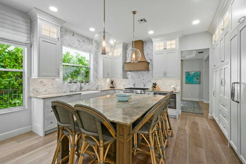 Welcome to Valencia At Abacoa, the only CUSTOM neighborhood in all of Abaoca.This completely renovated six-bedroom, 5 1/2-bath apartment home has been renovated, sparing no expense.This home is in a prime location, opening to the Valencia green space, a hub for community gatherings and children playing.Some of the home's updates include new floors, an entirely new kitchen(with Thermador gas appliances), marble bathrooms, a remodeled upstairs apartment, new lighting fixtures, stone countertops, a revamped pool, a redesigned backyard, a new custom bar, a new banister, three new air conditioning units, a new tankless water heater, all-new cabinetry, repainted inside and out, new baseboards, all walls and ceilings have been smoothed to level 5 finish, and so much more.