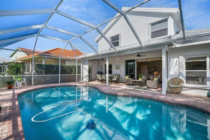 This 2-story, 4-bedroom, 3-bathroom pool home located in the desirable gated community of Mariner Village. This home has one bedroom and a full bath conveniently located on the first floor. Primary suite with ensuite and walk in closet upstairs with two additional bedrooms and full bath. Bright and airy living room and dining room combination, perfect for entertaining and everyday living. Kitchen, living area, and eat-in kitchen with sliding glass doors to the pool with paver patio and screen cage, offering preserve views. Recent updates include a BRAND NEW ROOF FEBRUARY 2025. Mariner Village has pool, cabana, tennis, basketball and sidewalks throughout.