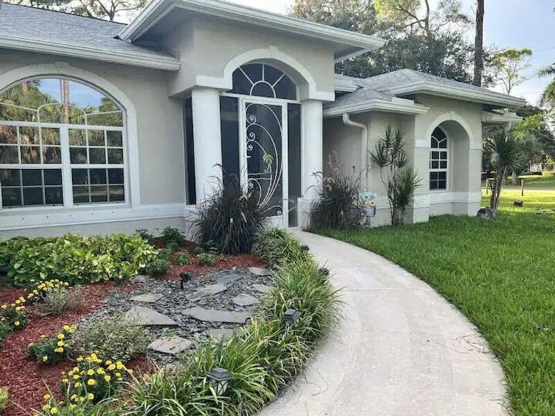 **SELLER IS OFFERING $50,000 CREDIT FOR UPGRADES** The main house is open and spacious with volume ceilings, 3 bedrooms, den can be 4th bed, 2 bathrooms, open kitchen, inside laundry, full pool enclosure on 1.37 acre east facing corner lot off of a paved road! This rental is only for the main house. ROOF 2022, large concrete driveway & walkways, landscaping, full fence with gate. Bring your boat, RV and horses to this beautiful equestrian land near Wellington. The guest house is open and spacious, 1 bedroom with Office/Den that can be converted into a 2nd bedrooms (has separate door to exit guest house) and 1 bathroom, open kitchen, inside laundry, enclosure patio on corner lot off of a paved road! Can be sold furnished or unfurnished.