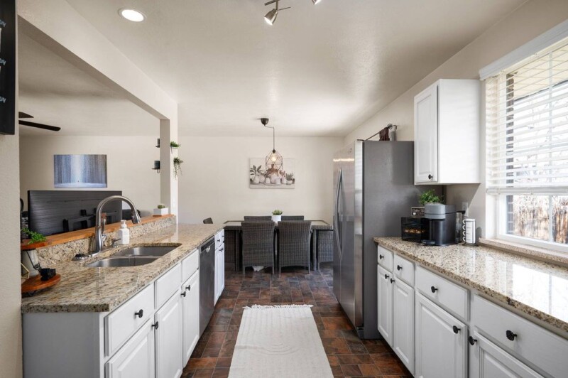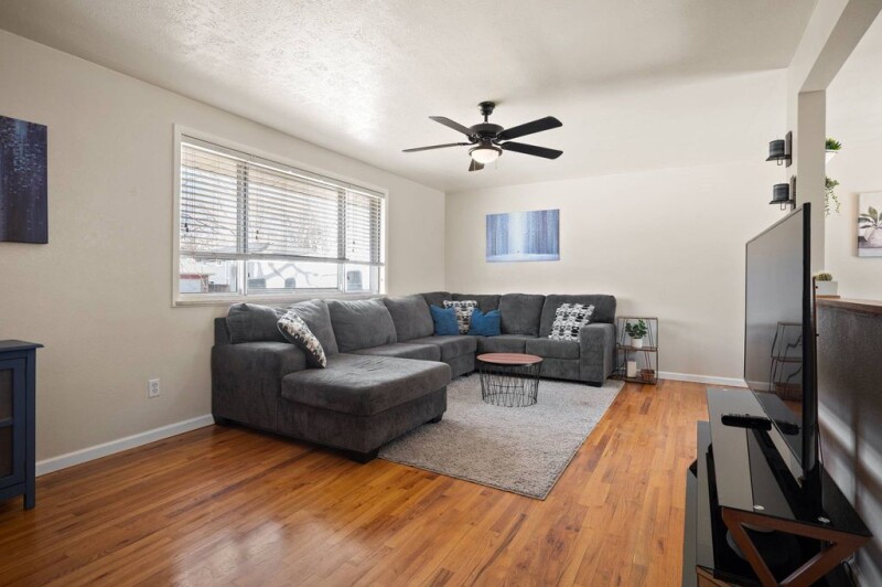 This beautifully updated tri-level home offers the perfect blend of comfort, convenience, and modern living. Step inside to a bright, open main level with a sunlit living room featuring gleaming hardwood floors and a large picture window. A stylish wall cutout connects to the kitchen, which boasts stainless steel appliances, solid granite countertops, ample white cabinetry with a pantry, and an island perfect for meal prep. Easy-to-maintain vinyl flooring leads to the breakfast room, where a sliding glass door opens to the backyard for seamless indoor-outdoor living. Upstairs, all three bedrooms have ample space, hardwood floors, and deep closets, sharing an updated full hall bathroom, and offer beautiful mountain views. The lower level expands your living space with a versatile den, durable terrazzo tile flooring, a laundry room with access to the lower yard, and an additional bathroom. The nearly finished basement features a spacious family room with a faux fireplace and brick hearth, a flex exercise room, a dedicated storage room, and built-in shelving. Outside, the private, fenced backyard is an entertainer’s dream, with an oversized cement patio, grilling area, lush lawn, a dog run and a concrete slab for RV parking. With easy access to Kipling and Wadsworth, commuting around the Metro area is simple, and the vibrant Belmar district—with premier shopping, dining, and entertainment—is just minutes away. Don’t miss out on this move-in-ready home that checks all the boxes!.