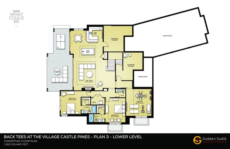 MOUNTAIN TRANSITIONAL PLAN 3: Soon to break ground at The BACK TEES CASTLE PINES VILLAGE, this lovely walkout ranch style home on a sloped lot where the main level takes the best advantage of views to the south and west. Award winning, Godden Sudik Architects have created this spectacular open concept walkout ranch style home on a generous lot just minutes from the Country Club at Castle Pines. Mountain Transitional Plan 3: Meticulously curated by Grace Simmering Interior Design, the home has 4 bedrooms & 6 baths and features stone/stained wood/stucco exterior and custom features too numerous to mention. The thoughtfully designed chef’s kitchen features a large island, quartz counters, Thermador appliance package, casual dining, flex space - ideal for catered events and a walk-in pantry. The spacious great room with carefully selected finishes is central for entertaining with an open ambiance that allows flow to the covered deck or kitchen space. The owner’s retreat features a generous primary bath and walk-in closet. A private office affords a quiet get-away. The lower-level invites activity or relaxation – with a game area, warm & cozy family/rec room, wet bar, separate workout room and covered patio. Of course, all bedrooms have en-suite baths. There is a powder room on both the main level and lower level. The oversized 3 car garage has a golf cart bay or additional storage space. Additional Development Information: • The baker’s dozen of 13 homes are situated along Oxford Peak Lane with 3 distinctive themes… Modern Prairie, Mountain Contemporary and Mountain Transitional. These elevations and a choice of 4 different floor plans, ranging in size from approx. 3,800 to 4,600 Finished SF offers the buyer a perfect blend of lifestyle, convenience and comfort. • Just 3 minutes from The Country Club at Castle Pines & Castle Pines Golf Club. • Completion is estimated at approximately 12 months.