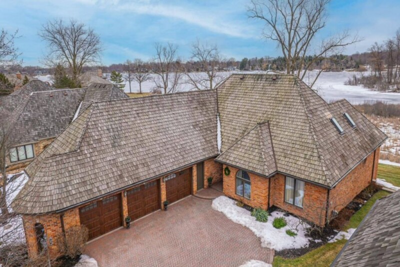 Experience the ultimate in luxury waterfront living on all-sports Silver Lake in the prestigious gated community of Chateaux Du Lac. This stunning 4-bedroom, 3.5-bathroom home boasts over 4,700 square feet of beautifully designed living space, including a finished walkout lower level. Soaring cathedral ceilings and an abundance of natural light in the great room highlight breathtaking lake views, complemented by a cozy fireplace. The main level features a spacious granite kitchen with stainless steel appliances, a breakfast nook, and a formal dining room—perfect for entertaining. The main-floor primary suite offers a spa-like retreat with a whirlpool tub and separate shower. The finished walkout lower level is designed for entertaining, featuring a one-of-a-kind custom wet bar crafted from over 10,000 pennies—an incredible conversation piece. This level also includes an additional kitchen, dining area, bedroom, and bath, making it ideal for guests or summer gatherings. Located in a gated community with exceptional amenities, residents enjoy a pool, clubhouse, tennis court, shuffleboard, and a private dock on Silver Lake. Embrace Michigan’s finest summer living with boating, swimming, and breathtaking waterfront views right in your backyard!.