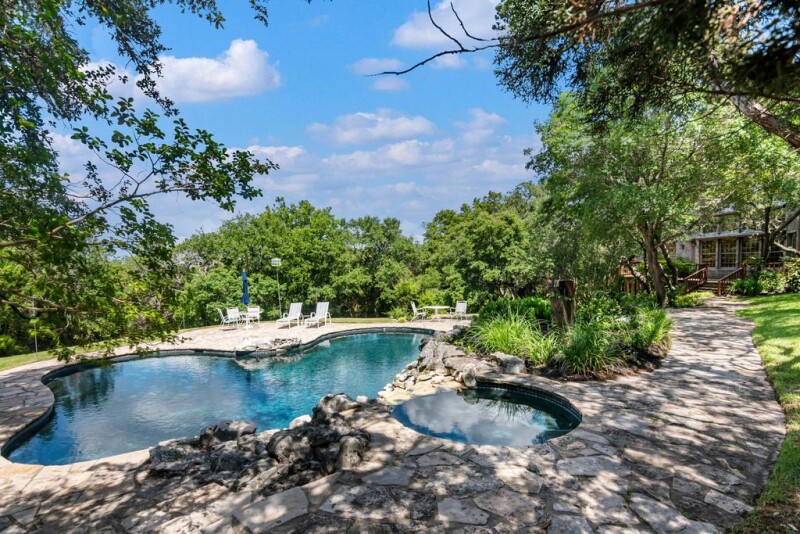 Rare find! Behind a private gate, this special property sits on 4.3+- acres, is surrounded by majestic oak trees, and offers complete privacy. Quality custom details with high ceilings, floor to ceiling Marvin windows, remote controlled window treatments, hardwood flooring. Too many features to mentioned! A fantastic floor plan for entertaining! Kitchen with double ovens, warming drawer, Sub Zero refrigerator/freezer, and walk in pantry. Wet bar overlooks dining room with built in cabinetry. Enjoy the 28%27 tall ceilings in family room with floor to ceiling dry stack stone fireplace. Game room downstairs offers soaring ceilings, full pool bath, and a wet bar. Dual Master Suites - Master downstairs features outdoor access, massive walk in closet, and spa bath. Master suite upstairs offers fireplace, spa bath, two spacious walk in closets, and private deck with majestic hill country views. Secondary bedrooms upstairs share a Jack and Jill bath. Extensive decking, covered patios, and screened in deck provides ample outdoor living space that can be enjoyed year round. Resort size pool with waterfall feature provides the perfect atmosphere to soak in the sun and relax or play. Greenhouse fit for the budding green thumb. Oversized 3 car garage boasts space for all of your toys.