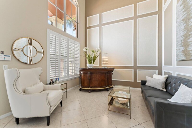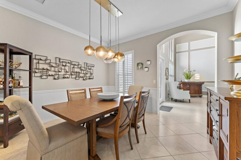 Absolute perfection found in the highly sought after community of Mirabella at Mirasol. Stepping inside, you are greeted by soaring ceilings and an open floor plan that allows for effortless flow between the main living areas. The heart of the home, A chef's kitchen is appointed with top of the line Bosch appliances w/Gas range, double ovens, granite countertops & center island. Featuring 5 bedrooms with the primary conveniently located on the ground floor, primary ensuite bath has been fully renovated with a modern, spa-like ambiance including a large freestanding tub, sleek marble tile shower & new double sink vanity. Abundant natural light, crown molding throughout and wood-tile floors offer a luxury, elegant & modern feel. Upstairs you'll find 4 additional bedrooms...