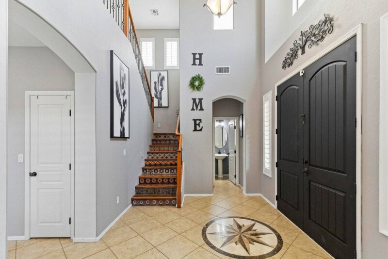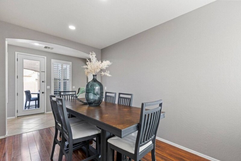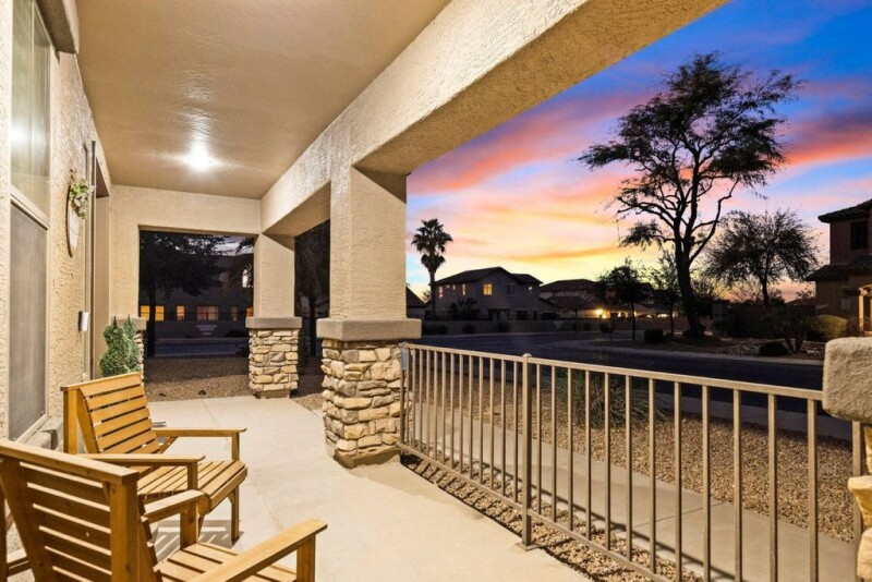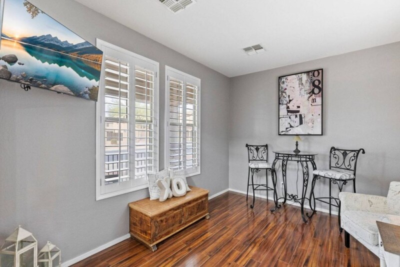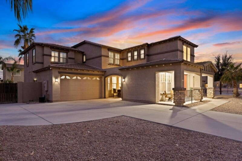 Step into this spectacular 4,119 sq. ft. home on a prime corner lot, where luxury and functionality blend seamlessly! This multi-gen floorplan is perfect for modern living, offering 5 bedrooms, 4.5 bathrooms, plus a loft/game room, PLUS 2 other bonus rooms one currently used as dining room. Enjoy not just one but TWO primary suites—each a private retreat. Stunningly remodeled kitchen is a chef's dream, featuring quart countertops, stainless steel appliances, white cabinetry, a tile backsplash, two breakfast bars, an island & huge pantry. Expansive great room flows effortlessly into the kitchen, making entertaining a breeze. Tile & ''Faux:'' wood floors throughout, plus plantation shutters for that extra touch of elegance. The primary suite is oversized, with space for a seating area. Massive walk-in shower, dual vanities, and a barn door for privacy. Walk in closet with built in dresser. Two staircases wrought iron /wood railings lead to the upstairs loft and additional bedrooms. One bedroom/ensuite full bath downstairs. Two large walk in deep storage closets downstairs. Built-in ceiling speakers in the great room, loft, backyard patio, and primary suite let you enjoy music throughout the home. Built in desk area upstairs, custom cabs. The outdoor oasis is jaw-dropping! A lagoon-style pool with a rock waterfall & beach entry, a built-in bar area , a covered gazebo, and lush palm trees create your own backyard paradise. The extended driveway and 3-car tandem garage offer ample parking. Walking distance to the community park & school, plus minutes from Queen Creek Marketplace with top shopping, dining, and entertainment options. This is the dream home you've been waiting for!.