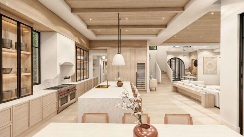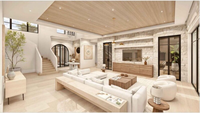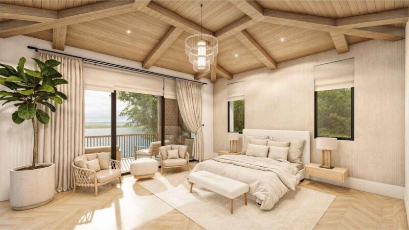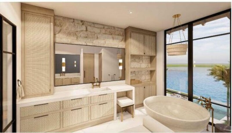 New ''Front Row'' Farmhouse Modern Intracoastal estate sited on 96 +/- Feet of waterfrontage in the prestigious beachside enclave of Boca Riviera by famed architect Randall Stofft and interiors by Carolina Interior Design in an organic high-styled rusticated flair . A gated entrance ushers guests to a tropical courtyard oasis with dual offices (BR#5 suite), a main great room and open gourmet island kitchen with dining room. A club room and VIP suite complete this level. The sculptural staircase ascends to the second level with grand primary suite with waterfront balcony, two additional bedroom suites and theater/screening room. Outdoor entertaining is enjoyed at the resort-style pool, two lanai's and summer kitchen.