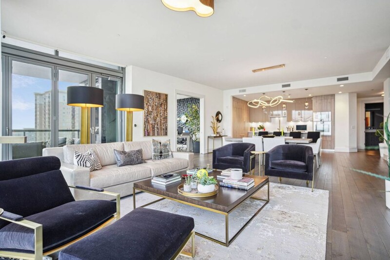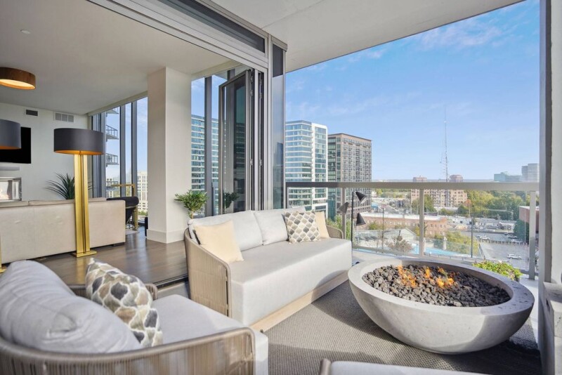 Looking for the ultimate in enduring and bold design in high-rise living, with luxury amenities, attention to detail, and next-level security in a boutique building? Then welcome to The Charles in the heart of Buckhead. This corner unit has two bedrooms plus an office, and two-and-a-half baths. Enjoy north and east views of Buckhead and beyond and open the NanaWall off the living area to welcome the outside in. The covered balcony features a built in grill, a rare find in a condo building. The living and dining areas of this home is open and enjoy the ambiance of a "in wall" fireplace. This top-of-the-line kitchen has Gaggenau appliances with a counter-depth refrigerator, steamer, oven, microwave and induction cooktop. There is a Miele dishwasher, Franke stainless kitchen sink, and Italian Gessi fixtures throughout this extraordinary home in the sky. The kitchen island comfortably seats four. Pedini New York modern Italian kitchen cabinets will never go out of style with their bold design and functionality. A pantry is hidden in this sleek kitchen design. In the convenient bar area are a dual-zoned Gaggenau wine refrigerator, Scotsman Ice Maker, and a U-line undercounter glass-front refrigerator, plus a recessed bar sink. Cambria quartz countertops complete the kitchen and bathrooms. A Lutron smart lighting system allows you to control your lighting from afar and the blinds are electrically-controlled. The office, with pocket doors off the kitchen and living room, has its own door to the balcony. The primary bathroom features a custom Pedini dual vanity with integrated lighted mirrors, a Victoria + Albert soaking tub and separate shower. There are custom closets throughout the home. Only five units per floor in The Charles! This unit comes with two assigned parking places and a storage unit. Amenities include a fitness center with the latest equipment, a club room and catering kitchen, an infinity pool, outdoor firepit and patio, a guest suite, and a dog walk and dog wash area, all on the eighth floor. The Charles includes a concierge, a modern and welcoming lobby, complementary valet parking, and a gated garage. All this in the heart of Buckhead where one can walk to your favorite place to work out, dine at top restaurants, or shop!.