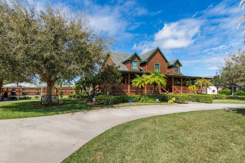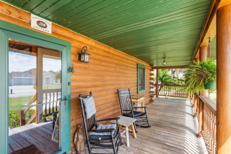 What a rare opportunity! This custom built log home on a 1/2 acre with detached air conditioned 3 car garage & half bath, is ready for you. The expansive circular driveway, mature landscaping, and house positioning make for a grand entrance. Walking up the wrap around porch, you feel transported to the Carolina Mountains. The kiln dried & borate treated logs ensure a durable, reliable and long-lasting structure. The open ceiling living room, heated by a fireplace, and lit by full glass windows and doors capture the log home feel. The main bedroom is on the first floor, has a walk-thru bathroom, and attached to a large mud room, nursery or office. The loft offers a 4th bedroom space. Outside, the 2016 A&G built pool with sun pad takes you back to the tropics with paver decking & Coco palms.