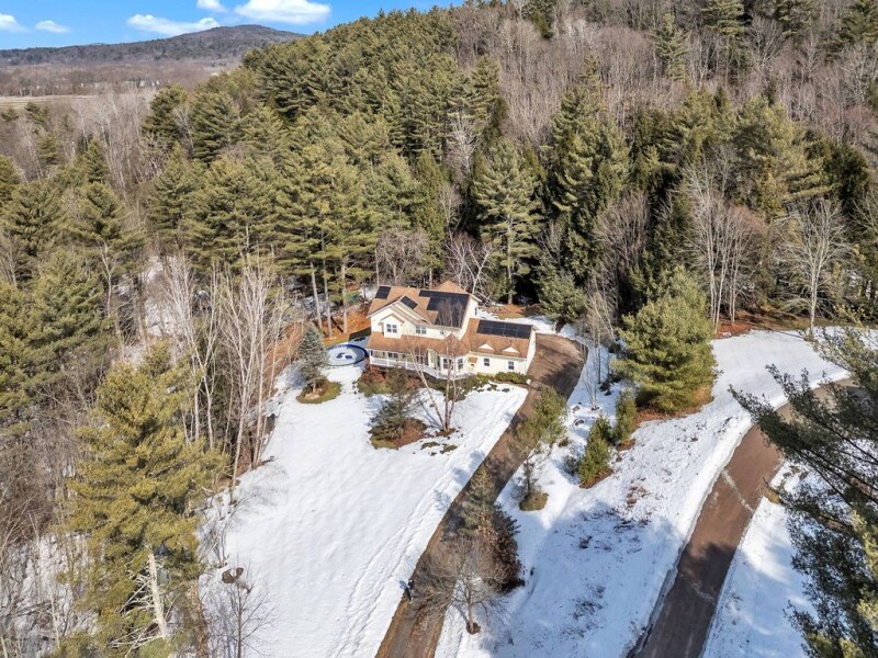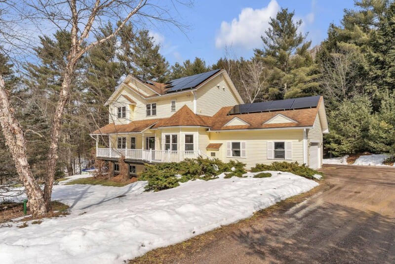 Situated on 4.76 private acres, this turn-key property offers a peaceful retreat with wooded surroundings, designed to bring nature inside and to maximize energy efficiency. The home boasts a 5-star efficiency rating (2002) with additional attic insulation added over time, ensuring comfort year-round. Owned solar panels are mounted due south, and are equipped??with individual microinverters to allow each panel to operate separately to maximize solar gain when some shading occurs. The covered front porch is the perfect place to relax and shields the house from too much solar gain in the summer, keeping the home cool. The large open living room and dining room invite you to settle right in, with newly refinished hardwood floors and a gas fireplace. The spacious kitchen features granite countertops and cherry cabinetry. There is radiant heating throughout the house.??Outside, enjoy the custom fire pit surrounded by swinging benches, with a?? view of the waterfall???a perfect spot to watch fireflies dance on warm evenings. Flowers were planted to bloom throughout the growing season, while the woods provide privacy and breathtaking autumn foliage. With thoughtful details throughout and a layout designed for relaxation, this home is a true sanctuary. It???s a place where you can live in harmony with nature and truly never want to leave.