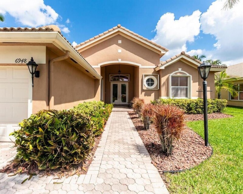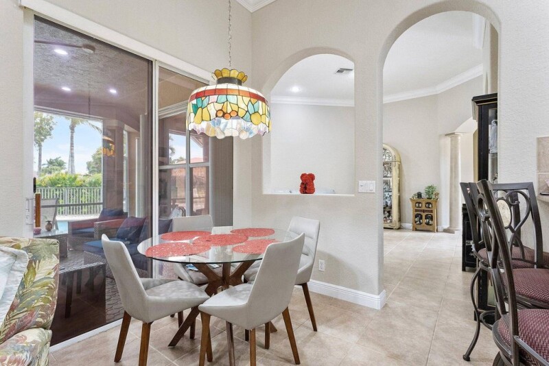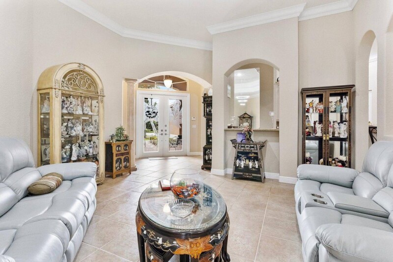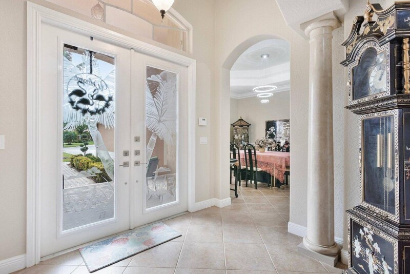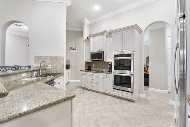 Set in the prestigious estate section of Parkland Isles, this stunning home offers impressive curb appeal and magnificent water views. Inside, you'll find tray and volume ceilings, crown molding, and recessed lighting throughout. Light, neutral tile extends across the foyer, living room, dining room, kitchen, family room, utility room, and fourth bedroom. The gourmet kitchen features elegant cabinetry, granite counters, a breakfast bar, and a walk-in pantry. The 3-way split bedroom layout ensures privacy, with the master suite boasting custom closets, a sitting area, and water views. The master bath includes a double vanity, whirlpool tub, and separate shower. Accordion shutters, impact doors, and a large paver driveway and patio complement the fenced pool area.