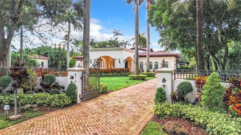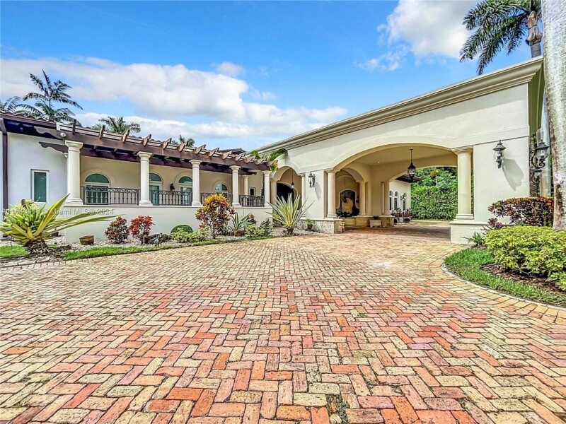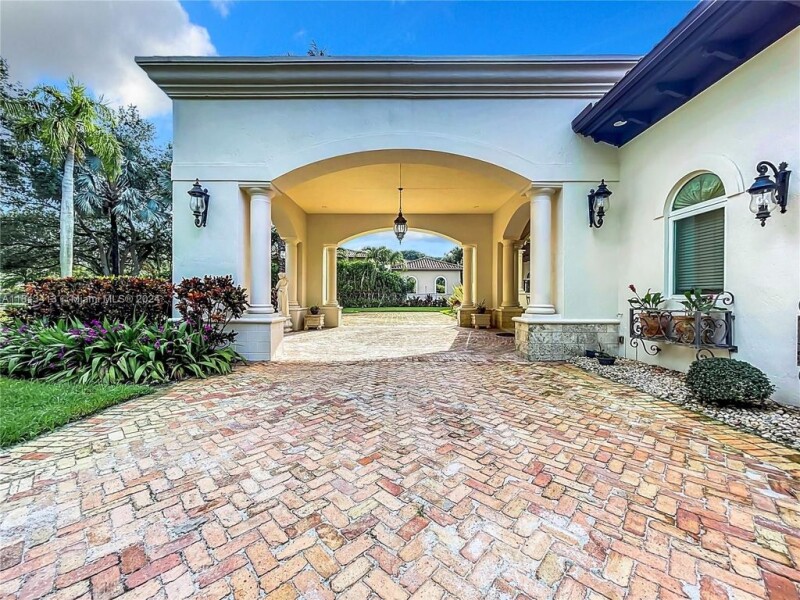 Tuscan-inspired masterpiece, better than new! Grand open floor plan that exudes elegance and spaciousness. Hand-crafted Mahogany, marble, detailed moldings, and hardwood floors. The living /dining rooms showcase double-height ceilings. The primary suite provides an opulent private retreat. Gourmet kitchen, dedicated media room, detached office/guest house with custom built-ins, and an inviting pool and spa. Entertain with a fully enclosed outdoor BBQ/Summer Kitchen and game room. Premium tile roof, hurricane-resistant doors and windows and a newly installed generator. Tropical landscaping with amazing palm trees line the property. Circular driveway with two entrances makes this home sensational for entertaining. Truly one of a kind, this home offers an unparalleled living experience!.