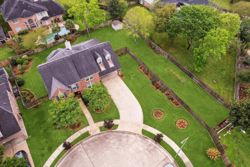 Exquisitely maintained and updated Village Builder home on oversized lot is nestled on a quiet cul-de-sac & tree lined street in the Pine Brook neighborhood. This 5 bedroom, 3.5 bath is updated through out with wood flooring, baths and has lush landscaping. Upon entry you are greeted with an elegant foyer framed by a formal dining room and study. The living room features soaring ceilings and a grand staircase. The kitchen overlooks the family room and features textured granite counters, under counter lighting and a spacious pantry. The primary suite overlooks the backyard and has an updated bath with and extended walk-in shower. The second story features a game room & 4 additional bedrooms and updated baths. The oversized backyard is ready for a pool and the extended side yard is ideal for gardens or a sport courts. Upgrades include windows and a Halo water filtration system. Located close to shopping, restaurants, schools, and parks this home is a must-see!.