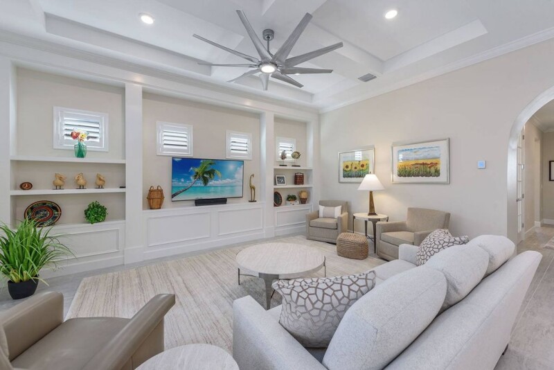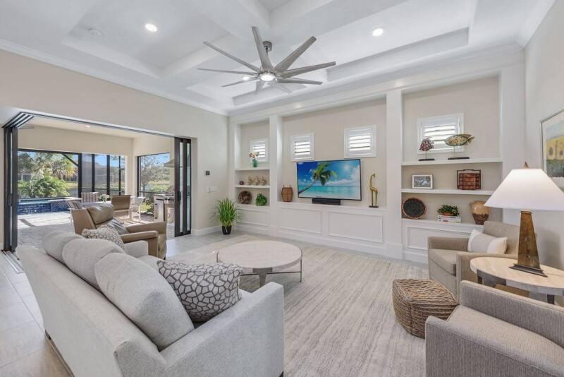 Searching for a home where serene lake views embrace your daily life≠ This impeccably maintained three-bedroom, three-full-bath lakeside residence in Amaranda in the distinguished community of Fiddler's Creek offers a harmonious merging of comfort and splendor! From its vibrant landscaping and colorful blooms to its thoughtfully designed interior, every detail of this abode is crafted for elegance and ease. Step inside to discover an open-concept layout bathed in natural light, courtesy of abundant impact windows, sliders and doors. Coffered ceilings with crown molding, plantation shutters and wood-look ceramic floors add warmth and sophistication, while contemporary fans provide a modern touch. This incredible home offers plentiful natural light and is like a new home without the wait or stress of building. Entertain effortlessly in the living and dining areas, while the open kitchen creates an ideal focal point with its sleek white cabinetry, gleaming quartz countertops, natural gas cooktop, wall oven, and premium stainless appliances. The pendant-lit island and generous pantry make it as functional as it is stylish. Your primary suite is an oasis, featuring a tray ceiling, walk-in closet, and spa-like en suite with a dual vanity and multi-head shower for ultimate relaxation. French doors lead to a bonus study, offering a versatile space for work or leisure. The expansive screened-in lanai is another area where this dwelling shines. Pocketing corner doors create a seamless transition between indoor and outdoor living, leading to a pristine saltwater pool and spa with breathtaking lake views. The patio's outdoor kitchen with its stylish tile backsplash and built-in grill is ideal for weekend get-togethers, while electric shutters provide convenience and protection. Additional highlights include an attached two-car garage and a laundry nook with built-in shelving and a sink. Furnishings are included, allowing for an effortless move-in experience. Venture beyond your tranquil street to uncover the many perks of residing in Fiddler's Creek. This exclusive, gated community features miles of scenic promenades for biking and jogging, profuse greenery and world-class amenities. Stay active with a state-of-the-art fitness center, professional trainers and group classes, or unwind in the hot tub, sauna and steam room. Tennis and pickleball lovers will love the year-round programs, while golf enthusiasts can treat themselves to the new clubhouse and newly renovated championship course with immediate optional membership. An extensive social calendar fosters a sense of camaraderie. Ideally just minutes from downtown Naples and Marco Island, this home offers easy access to stunning beaches, excellent restaurants, boutique shops, yacht clubs and endless recreational sports. Memberships in golf, beach and marina clubs are optional and sure to enhance your experience. Grab this exceptional opportunity today!.