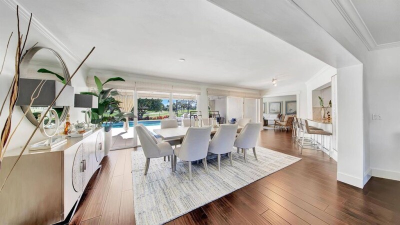 Welcome to 11944 N Lake Drive, a stunning home located on the 9th fairway of the newly renovated Pete Dye-designed golf course in the highly sought-after Delray Dunes community. This beautifully upgraded 3-bedroom, 2 1/2-bathroom residence offers an open floor plan that's perfect for both everyday living and entertaining. Step inside and be immediately impressed by the spacious layout and abundant natural light. The interior features newly refinished wood floors, freshly painted walls, and new refrigerator and microwave, creating a fresh, modern atmosphere throughout. The kitchen opens seamlessly to the living and dining areas, making it ideal for hosting guests or enjoying quiet family time.