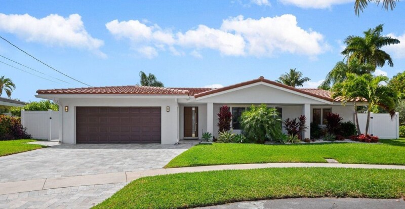 Beautifully remodeled 3-bed, 2 bath single-family home located just minutes from the beach, top-rated shopping, and major highways. This move-in-ready gem features a sleek, modern open kitchen with high-end appliances and custom German cabinetry. The split-bedroom layout offers privacy, while the spacious main suite includes a double-sink vanity and finished closets. Enjoy a luxurious free-standing tub in the second bathroom, plus a dedicated laundry room for added convenience. New AC, new roof, and impact windows provide peace of mind. The lushly landscaped backyard is an entertainer's dream with a private pool and dock—perfect for waterfront living. No HOA! This property qualifies for a lender credit with Sean Segaloff at MWS Mortgage Solutions. See broker remarks for details.