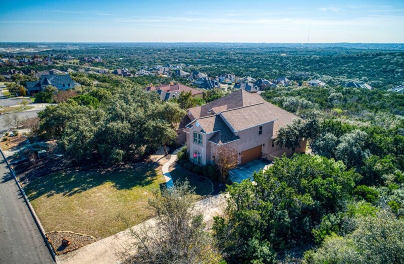 Nestled in the serene backdrop of Government Canyon Nature Preserve this premier luxury home offers breathtaking views of the hill county. Ideally located in the esteemed Iron Horse Canyon Estates it features opulent grand entry, monumental elevated cathedral ceilings and a lavish open floor plan that is bathed in natural light. Upgrades include, high end wrought iron throughout, lavish plantation shutters, brand new stainless steel refrigerator, opulent granite countertops, refinished high end cabinetry, custom design pendant lighting and newly painted walls by licensed contractor. Uniquely designed, there are two cozy wood burning fireplaces (living area and study) creating the perfect blend of luxury and warmth. A wrap around covered porch and 2 nd story balcony are ideal for entertaining or simply relaxing while watching a majestic sunset. This custom design incorporates a picturesque panoramic view in every direction.