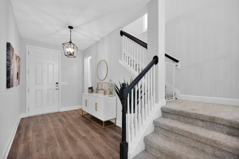 Welcome to this stunning two year old David Weekley McClanahan model, nestled in the highly sought after Settler's Landing in Nocatee! This meticulously maintained home offers four bedrooms, two and a half baths, and a wealth of custom features that make it truly one of a kind. Step inside to discover a spacious open floor plan with beautiful plantation shutters, a custom built living room with a cozy fireplace, and plenty of built ins for added storage and style. The gourmet kitchen is a chef's dream, perfect for entertaining and everyday living. The oversized, extended screened in lanai with pavers offers the ideal spot to relax while overlooking a peaceful preserve, one of the largest backyards in Settler's Landing, with tons of room for a pool! The master bedroom is conveniently located downstairs, offering a private retreat, while upstairs you'll find three additional bedrooms plus a versatile flex/playroom. Each bedroom comes with custom closets, ensuring ample storage for all your needs. Additional highlights include a finished attic space with a pull down ladder, custom closets throughout, a two and a half car garage with overhead storage and golf cart parking, and dual electric outlets in the garage, one for your golf cart and another for an electric vehicle. Location is key, and this home is just minutes from the PIA school, playground, dog park, walking path, and Settler's breathtaking pond. It's perfect for bike rides, jogs, or simply enjoying the serene surroundings. This incredible home offers the best of Nocatee living. Luxury, comfort, and convenience all in one.