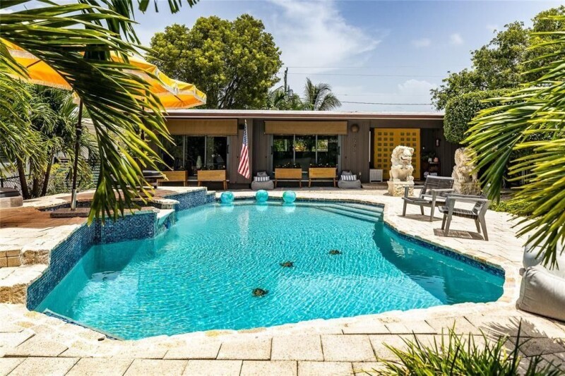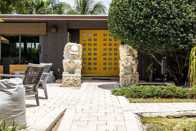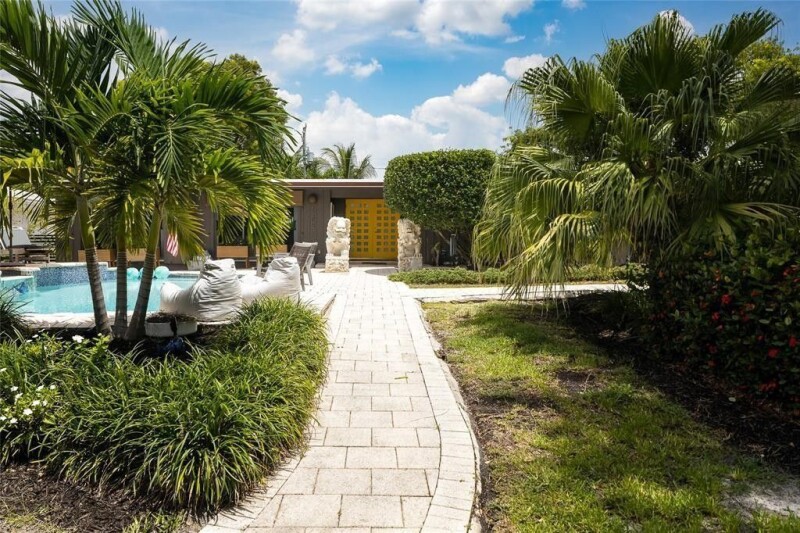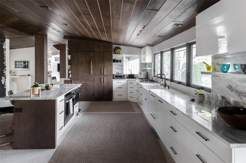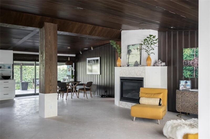 Discover this stunning mid-century modern residence designed by architect Alfred Browning Parker, meticulously renovated to maintain his visionary design. Nestled in a serene, private setting, this home features an airy, open layout that seamlessly blends with nature. The gourmet kitchen boasts solid wood cabinetry, quartzite countertops and Fischer & Paykel appliances. Living spaces are highlighted by cypress wood ceilings and accent walls, exquisite limestone flooring throughout with terrazzo in the dining room. Large great room with floor to ceiling windows with views of the pool and garden. The exterior is equally impressive, featuring a new pool with lush landscaping. Every detail has been thoughtfully curated for comfort. New roof and all impact windows.