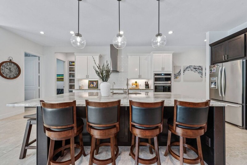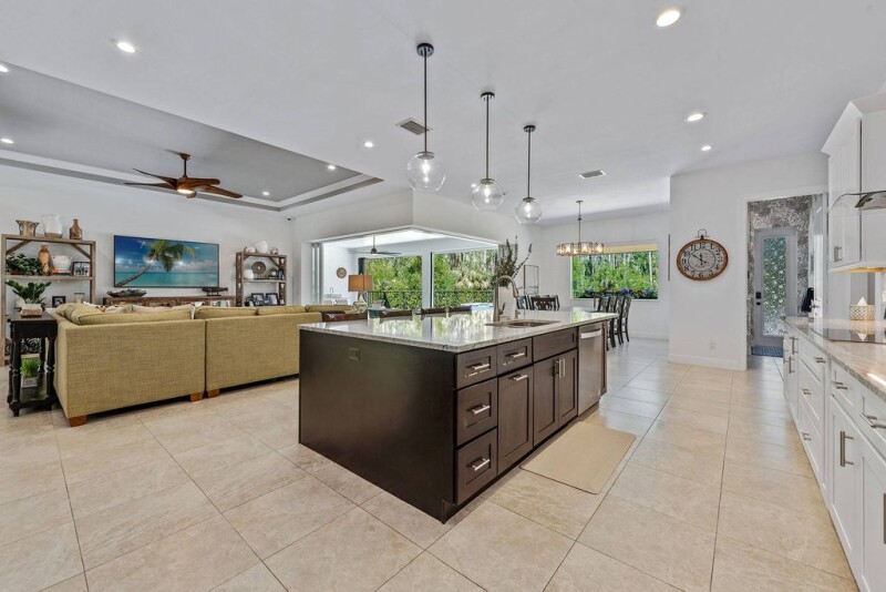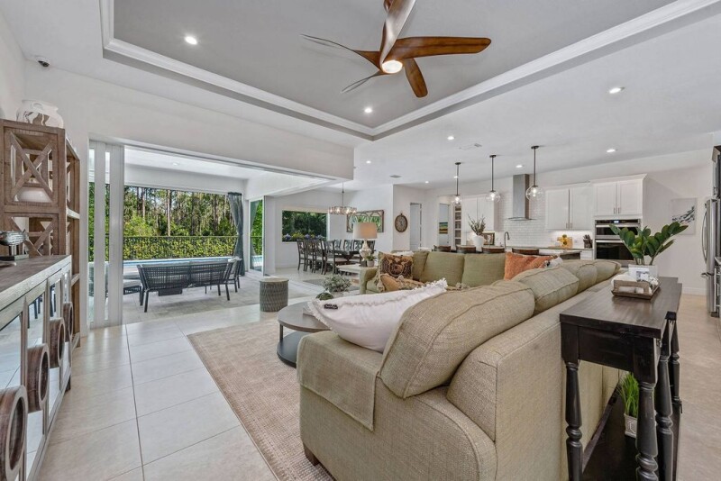 With 2.5 acres of privacy on a cul-de-sac street in Weber Woods, Naples. And, the homesite allows for additional building if desired. No HOA restrictions or fees. Tour this stunning 2019-built open plan home, with 10-foot and 11-foot ceilings, four bedrooms with en suites, five full baths (including a pool bath with shower), separate game room, and a generous home office. Large kitchen for entertaining, built-in cabinetry. Upgrades include all impact glass doors and windows, plantation shutters, tile flooring throughout, home generator and more. Kitchen offers 5-by-9-foot island, pantry and views through picture frame window and zero-slider doors to the pool and spa. Lanai features a 2025 outdoor kitchen. Also find electric rolldown shutters, brick paver patio sparkling saltwater pool and spa. Stylish and durable metal roof, and side-entry three-car garage. Mature landscaping surrounds this exceptional retreat, just minutes from supermarkets and dining. Easy to see!.