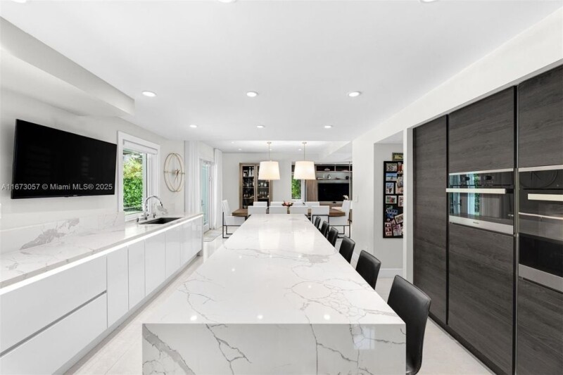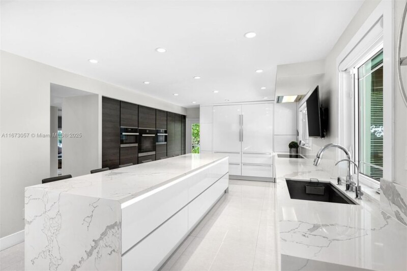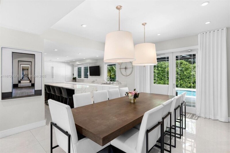 Discover this exquisite fully renovated two-story residence in vibrant Miami Beach. Enter thru the fully gated circular driveway, this home features 5 spacious bedrooms and a versatile media room that can serve as a 6th BR. The formal dining room seamlessly transitions into the living room, perfectly situated adjacent to the gourmet kitchen, which boasts a spacious island and top-of-the-line Sub-Zero/Miele appliances. The main level features gleaming tile floors that enhance the bright and airy ambiance, while the upstairs is adorned with luxurious wood floors. The upper level hosts all 5 bedrooms, including an expansive primary suite with a private balcony overlooking the pool.The outdoor area is perfect for entertaining, with a large pool, covered dining space, playground, and BBQ area.