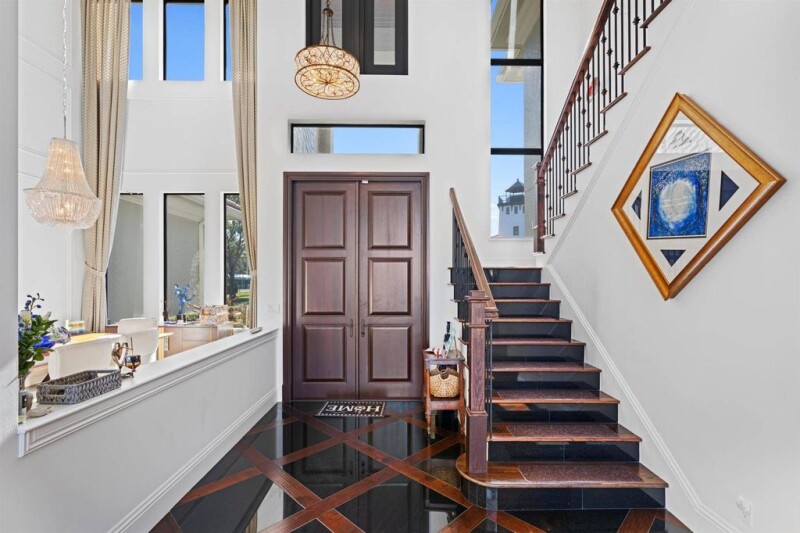Beautiful waterfront estate sized home on a 1/2 acre lot in the gated community of Portage Landing North. 125 Ft. of water frontage w/dock, and lift. The architecture and design of the home is a blend of traditional and modern, with soaring ceilings in the living areas, and large custom windows facing the pool deck and water. A custom professional kitchen with gas appliances, warming drawers, 60'' refrigerator, 2 dishwashers, and a welcoming center island. A large family room off of the kitchen opening to the covered patio, and grill area. The master BR is on the 2nd floor with a private balcony, and luxurious bath. 2 other guest rooms are on the 2nd floor, also with an outdoor patio/balcony. The home was built in 2014 to current elevation code, all impact glass, and cement construction.