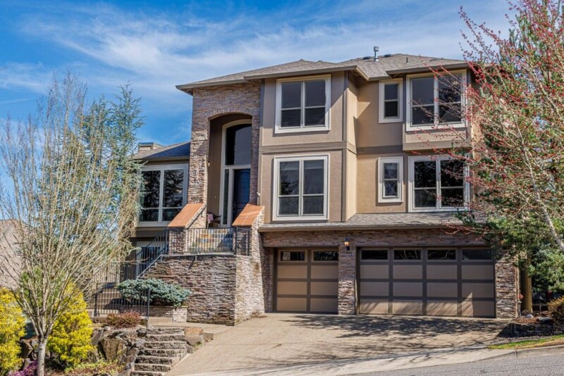 Sophisticated, Light-Filled Contemporary Home in Prestigious Jackson Hills. Welcome to this elegant and inviting home nestled in the highly sought-after Jackson Hills neighborhood. Designed for modern living, the thoughtfully crafted layout offers exceptional flexibility, making multi-generational living effortless with bedrooms and full bathrooms on each level. Step into the charming entryway, where soaring vaulted ceilings and a cozy fireplace create a warm and welcoming ambiance in the spacious living room. The formal dining room, adorned with classic wainscoting & coffered ceilings is bathed in natural light. At the heart of the home, the gourmet kitchen boasts stainless steel appliances, pantry, granite countertops, an island with extra storage, and breakfast bar. Flowing seamlessly into the casual dining area and family room, this space extends onto a generous balcony'ideal for entertaining while taking in the breathtaking views of Mt. St. Helens. The main level also features a versatile bedroom, full bath, and a private office, offering comfort and convenience for guests or remote work.Retreat to the dreamy primary suite, where French doors, refined ceiling millwork, a cozy fireplace, and a wall of windows invite natural beauty inside. The spa-like ensuite is a true sanctuary, featuring a jetted tub, fireplace, abundant natural light, a walk-in shower and double sinks. Downstairs, the expansive family room with a wet bar and large windows opens to a huge deck and covered outdoor dining area, ensuring year-round entertainment. The three-car garage includes a large storage room, while the secondary laundry room on the lower level adds to the home's effortless functionality. A generous backyard, wonderful neighbors, and nearby parks complete the picture'offering a vibrant yet peaceful lifestyle in one of the area's most desirable communities.
