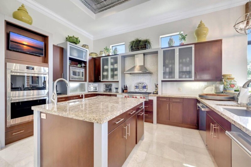 Experience resort-style living in this meticulously crafted oasis! Nestled within the prestigious gated community in Boca Raton. Discover unparalleled luxury and privacy in this lakefront masterpiece next to a nature preserve setting. Step inside to explore the fully appointed showcase former builder model, now elevated to new heights of perfection. Indulge in ultimate relaxation within your own saltwater pool and spa. Gas flame lamps create a captivating ambiance, while a commercial-grade tiki bar beckons for leisurely evenings. State of the Art Movie Theatre, first floor master suite, library, top of the line appliances include a Sub-Zero, Wolfe, Asko, and Alfresco. State of the art waterfall feature comes off the roof of home.