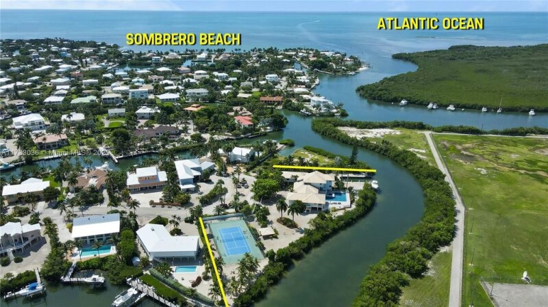 Welcome to your private paradise on Sombrero Isle! This luxurious 1.5-acre estate on 3 platted lots boasts 500' of water frontage, offering endless opportunities: preserve as a private retreat, subdivide, or build another home. Priced $1.5M under its 2024 appraisal, this is a rare chance for instant equity. With direct Atlantic access, a concrete boat basin, 28k-pound lift, and 10k-pound jet ski lift, it's a boater's dream. The open, newly-renovated interior features vaulted ceilings, 7 bedrooms, stunning water views throughout. Outdoors, enjoy a saltwater pool, tennis court, lush palm grove and landscaping. Hurricane-rated windows, a generator, and ADT security offer peace of mind. Just a block from Sombrero Beach and minutes from Marathon Airport, this is the ultimate Keys sanctuary.