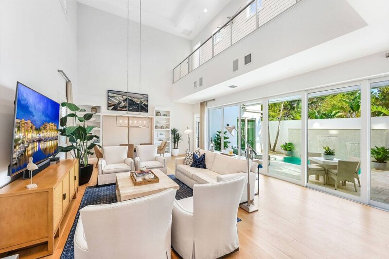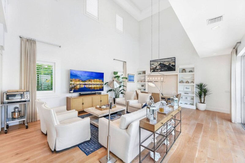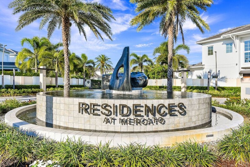 This is the only home available in The Residences at Mercato. Beautiful former model home kept in pristine condition that has been professionally decorated with a coastal contemporary flair by Clive Daniel Home. As you walk in there is an abundance of natural light through the south-facing wall of windows overlooking a tranquil tiered waterwall feature spilling over into a dipping pool. Beachy light wood floors throughout the main living area, and a custom built-in banquette for dining. Two spacious primary suites, one on the main level with custom closets and gorgeous baths. Second level has a guest en suite, primary suite and family room/den loft.Live the luxury urban lifestyle in a community that provides lawn and pool maintenance, window cleaning bi- annually, pressure washing annually and outdoor painting upon schedule. Enjoy all Mercato has to offer just outside your private gated community. Just 1.7 miles to Vanderbilt Beach.