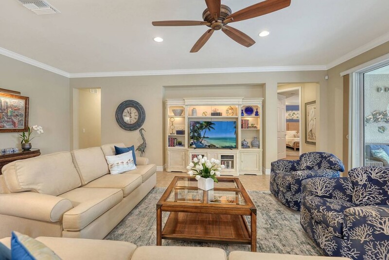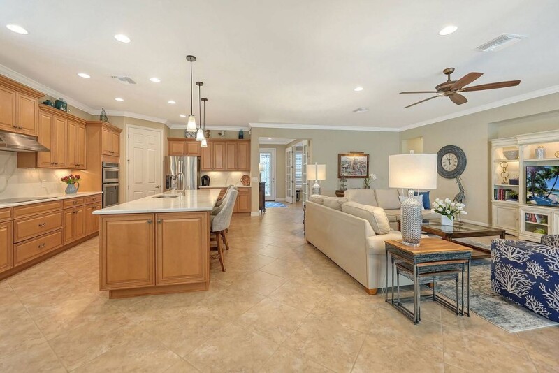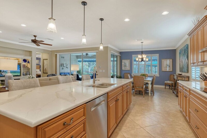 Immaculate turnkey home fully furnished and ready to move in! It is easy to perfect the art of living when you live in a work of art. Pristine condition and lovingly maintained by original owners. Premier Sotheby's International Realty proudly presents this captivating home designed and constructed with the philosophy of quality, detail and durability. The epitome of an entertainer's dream home where a harmonious blend of style, functionality, and luxury will dazzle guests and create unforgettable experiences. Featuring three bedrooms, flex/office/den, three baths, three-car garage and a heated saltwater pool and spa. The home boasts an impressive entrance surrounded by lush, manicured landscaping. The open concept of living spaces flows seamlessly to blur the lines between indoor and outdoor living. As you enter you are immediately transported to the finest in Florida lifestyle. The heartbeat of the home is a chef's paradise outfitted with stainless refrigerator, dishwasher, wall oven and microwave, electric cooktop, quartz counters, under-the-cabinet lighting, instant hot water tap, abundant solid wood cabinetry, pantry closet, and a sprawling island where friends and family can gather to share in culinary delights. Adjacent to the kitchen is a lovely dining area encouraging shared meals and providing ambiance for more intimate dinners. The gathering room strikes an ideal balance. Whether hosting lively get-togethers or enjoying a peaceful evening, this versatile room adapts effortlessly to the occasion. The primary suite offers a private and relaxing retreat, and guest accommodations are warm and welcoming. Since taking possession of this enchanting home, the owners have amplified its brilliance and allure. Some of the numerous enhancements include underground whole-house 250-gallon propane Koehler generator, water softening system, heavy-duty lanai structure with panoramic view screening, polyaspartic garage floor coating, luxury vinyl flooring in bedrooms, closets and baths, new air conditioner and furnace in 2023, sink and cabinets in laundry room, insulated garage doors, front entranceway screen enclosure, landscape lighting and decorative landscape curbing, new pool heater and pump in 2023, hurricane protection, new pool pump in 2023, pool and spa heater in 2023, and more. IslandWalk offers the ultimate in amenity-rich resort-style living featuring 24-hour guard-gated security surrounded by sparkling lakes and lush manicured landscaped recreational and biking trails, two clubhouses, event center, heated lagoon and heated lap pool, eight Har-Tru tennis courts, 12 pickleball courts, basketball and two bocce courts, activities and craft room, two state-of-the-art fitness centers, dog park, playground, community garden and two community kitchens, lending library and a full-time activities director. With its unparalleled amenities and idyllic setting in a 24-hour guard-gated community, this exceptional home epitomizes resort-style living at its finest. Convenient to beaches, golfing, fishing, downtown historic Venice, Wellen Park, State College of Florida Manatee-Sarasota Campus, Atlanta Braves spring training at CoolToday Park, restaurants, shopping, medical facilities, houses of worship, U.S. 41 and Interstate 75. Step into your new home with ease where moving is made stress-free.