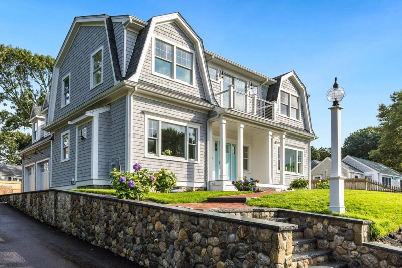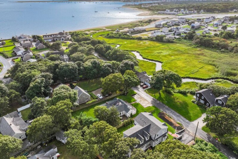NEW CONSTRUCTION: This custom-crafted Gambrel home offers a relaxed coastal lifestyle with scenic views of the tidal marsh, Lewis Bay, and Nantucket Sound. The 3,634 sq ft home features an open floor plan with high ceilings, grand windows, and bleached red oak hardwood floors. The living room boasts a stunning field stone gas fireplace, coffered ceilings, wainscoting, and recessed lighting. The custom kitchen features granite countertops, Thermador appliances, and a wet bar with a wine cooler. The kitchen opens to a private patio and fenced-in yard with in-ground irrigation. The first floor also includes a two-car garage, mudroom, laundry room, and a primary suite. The second floor offers a second primary suite, two guest bedrooms with a shared bath, a 600+ sq ft bonus room with a wet bar, an additional laundry room, and a porch with Lewis Bay views. Additional features of this 4-bedroom, 3.5-bath home include natural gas forced hot air, central A/C, and an 820 sq ft finished basement. Ample space is available for a swimming pool.