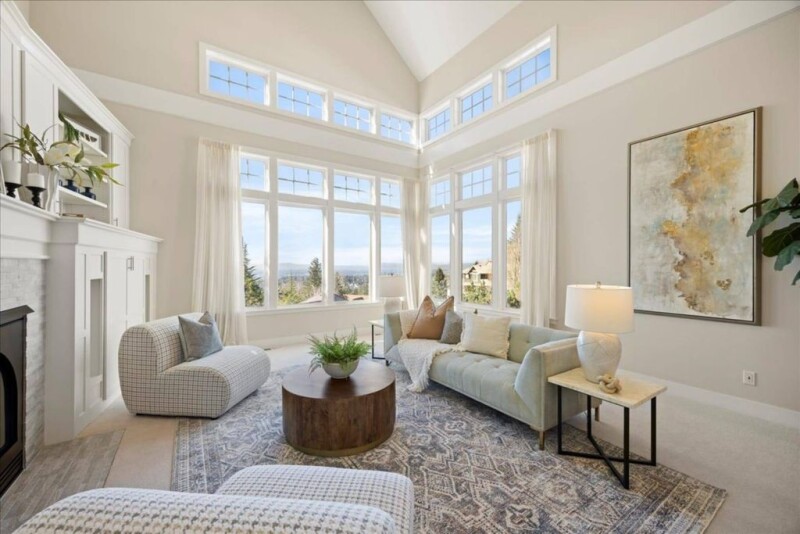 OPEN HOUSE SUNDAY 4/6. Dazzling remodeled Forest Heights showcase estate offering sweeping valley and coastal range panoramic views from 2 decks and most rooms! Enter to incredible natural light, soaring ceilings, and walls of SW facing windows that frame the cinematic sunset vistas. New roof and beautifully reimagined chef's quartz kitchen with Thermador appliances, beverage cooler, dual sinks, nearby handsome dining room, and plush living room, all opening to the central main level entertaining deck. Picture perfect for intimate evenings in or for grand dinner parties! Built by a Street of Dreams builder with an eye for generous room sizes and fine finishes, this home enchants across all 3 levels. Enjoy a main level executive office with more breathtaking views and nearby full bathroom, splendid primary suite with fireplace, soaking tub and attached dressing room, and 3 additional upper floor bedrooms with all new carpet upstairs. Host guests in the sumptuous ground level suite with family room, wine tasting/flex room, and 2nd covered view deck. Fully repainted, updated quartz bathrooms, new lighting fixtures, smart features, and much more. Rare level fenced yard with raised garden beds and bonus detached gym/studio with private entrance! Have it all and then some on a private cul-de-sac near top Portland amenities. Special financing incentives available on this property from SIRVA Mortgage. Home Energy Score = 2. HES Report at.