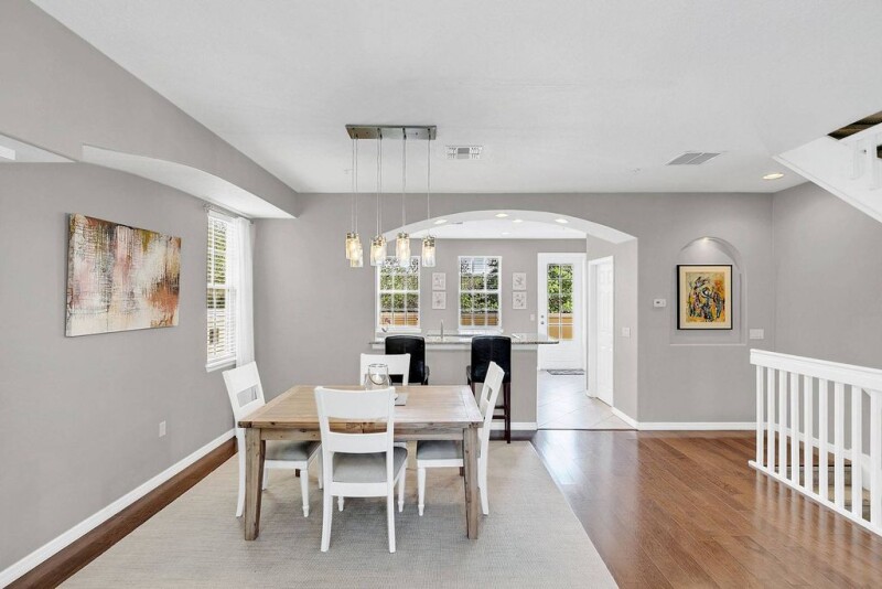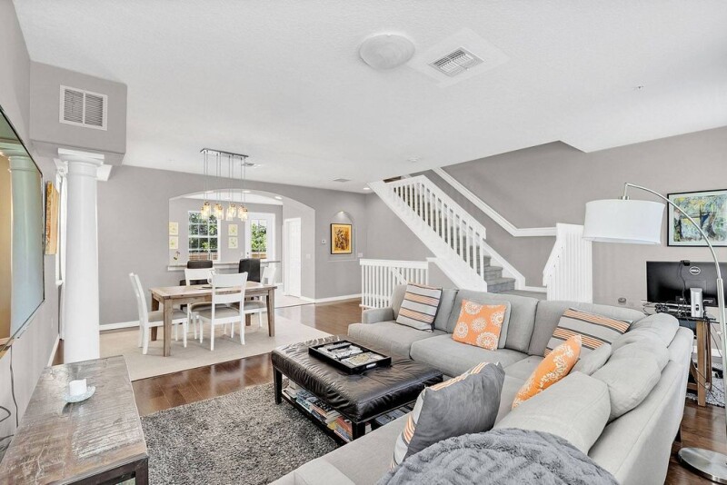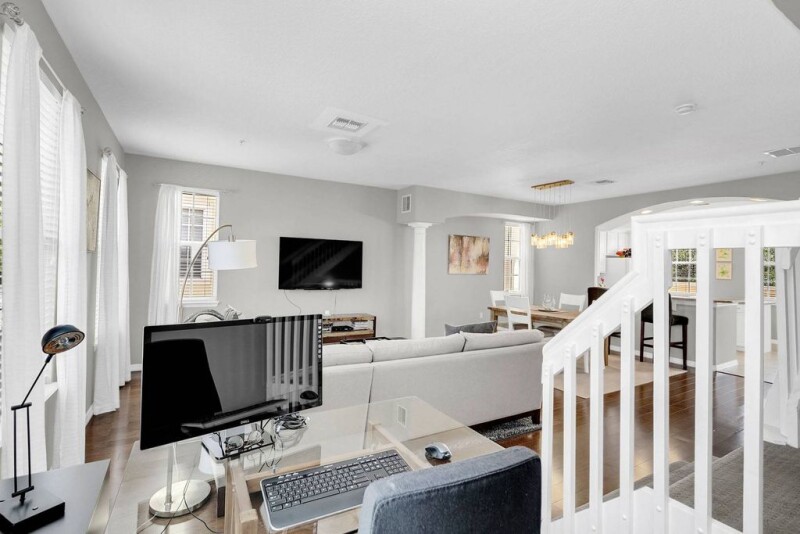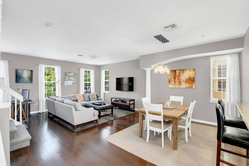 Experience the lifestyle of Baldwin Park, a community full of parks, walking trails, pools and a vibrant town center. This townhome on Chatfield's location is pristine, short distance from downtown providing an urban lifestyle that is unlike any other downtown neighborhood. A three-bedroom, 3.5-bath town home with nearly 2,100 square feet could be sold partially furnished awaits and showcases a split plan layout and generous open living space and pristine. First floor walkout guest suite enjoys separation from third-floor bedrooms for privacy and convenience. Second floor main living space is generous with volume ceilings, beautifully toned wood floors and lots of windows for natural ambient light. Kitchen is light and bright with granite countertops, pantry for storage as well as an eat-in area with bar seating or add a secondary island. The kitchen seamlessly combines dining and living spaces and features a powder room. A quaint balcony for you to enjoy sunsets and summer breezes, and to entertain. Primary suite and additional en-suite bedroom are on third floor with neutral finishes for timeless appeal. Laundry is also situated for ease of daily function. Primary includes a walk-in closet with great storage, spacious primary bath with soaking tub, double sinks and walk in shower. Schools are fantastic with Baldwin Park Elementary, Glenridge Middle and Winter Park High anchoring the home values of the area. Enjoy the ease of this location strategically central, close to downtown Orlando, the airport, Winter Park and most major state roads. Baldwin is known for its close-knit community with a focus on enjoying the outdoors and amenities that make Baldwin unique in an urban setting. Baldwin has historically been a great investment and continues to be one of the best communities in Central Florida. As you head upstairs to the third floor, you will enter bedroom No. 3, complete with a walk-in closet and en-suite bath. Down the hall is the laundry closet with ample storage. Finally, you will enter the primary suite, which has a private en-suite bath featuring dual vanities, a luxurious soaking tub and a walk-in shower. With easy access to shopping, dining and all Orlando has to offer, this home combines the best of suburban living with urban convenience.
