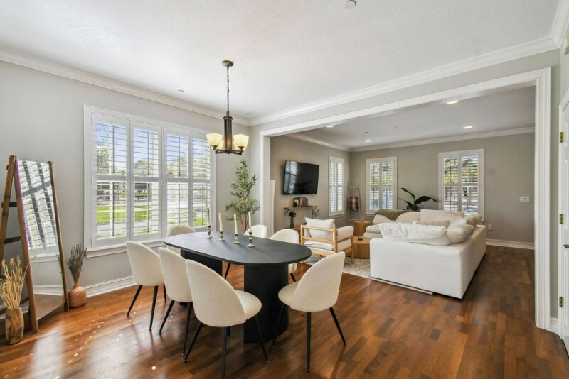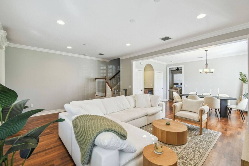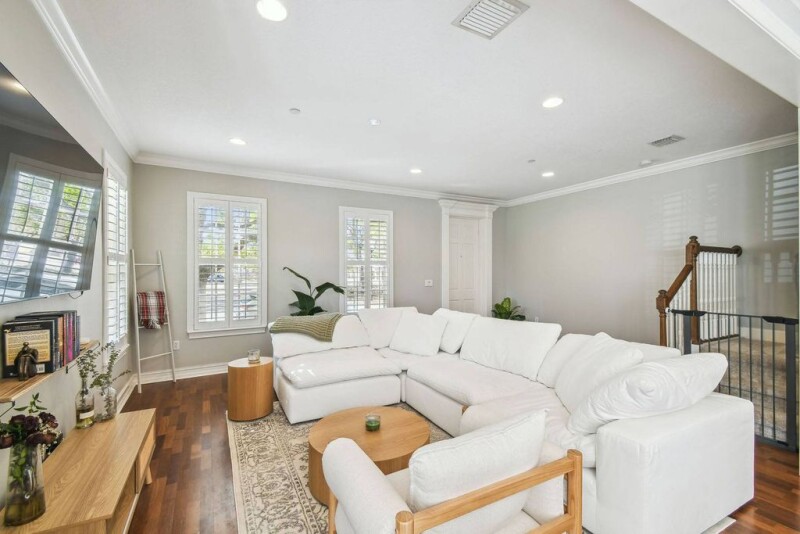 Welcome to this beautiful two-bedroom plus a large loft that could easily be a third bedroom and 2.5-bath corner townhome on an oversized end lot filled with natural light from windows on three sides making it stand out from other end units. Offering 2,057 square feet of designed living space that has been thoughtfully crafted to maximize a light and airy feeling throughout. When entering you notice the large foyer along with the spacious open living and dining areas with wonderful wood floors and plantation shutters throughout. upgraded kitchen featuring stainless steel appliances, wood cabinets, granite countertops, crown molding and a convenient breakfast bar along with the adjacent den, office or play area that makes for great flex space. A bright breakfast nook provides the ideal spot for casual meals, while a half bath and a dry bar with a beverage cooler complete the first floor. Upstairs has all new plush carpet where you'll find the spacious owner's suite, a huge walk-in closet and a terrific bath with double sinks, a soaking tub and a separate shower. Down the hall is the second bedroom, a full bath, laundry room and the large loft space, which could easily become a third bedroom. Step outside through the kitchen door to enjoy your private outdoor patio, extending your living space for outdoor relaxation whether it's sipping coffee in the morning or unwinding with a drink at end of the day. Just beyond the patio is the attached two-car garage. Additional features include a new roof as of mid-March 2025, built-in sprinklers throughout and a security system. In a desirable school district, this home offers excellent educational opportunities for families. The Baldwin Park community has fantastic amenities, including three clubhouses with pools, two fitness centers, playgrounds, parks and scenic walking trails, including one around the sparkling lake just down the street. Enjoy the convenience of having a Publix, restaurants, shopping and more in your neighborhood. Don't miss out on this incredible opportunity to live in one of Orlando's best communities. Call today to schedule your private showing!.