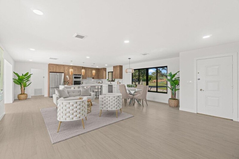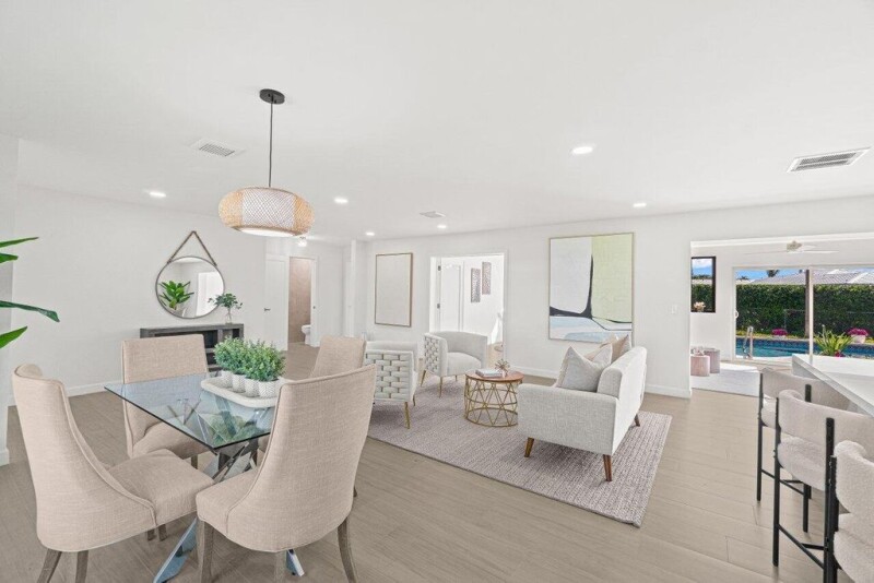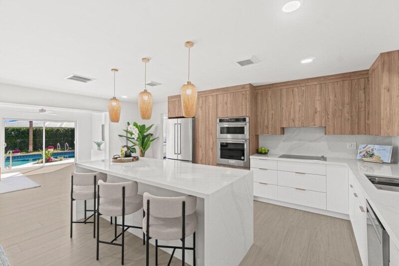 Step into luxury living at its finest in this completely renovated home featuring 3 spacious bedrooms w/ ENSUITE baths plus powder room, PLUS OFFICE, HUGE family room, 2 car garage & sparkling blue pool! You will notice the impeccable craftsmanship & attention to detail in this beautifully transformed home W/ high end finishes from top to bottom. This home is extremely bright due to natural light streaming through the many windows & light porcelain tile flows throughout. The kitchen features a massive island w/ bar seating, contemporary cabinetry & top of the line KitchenAid appliances! NEW (50 yr) ROOF 2025 w/ transferrable warranty & NEW IMPACT WINDOWS! Relax, entertain friends or watch the kids or pets play in the spacious backyard! Home is priced below recent appraised value.