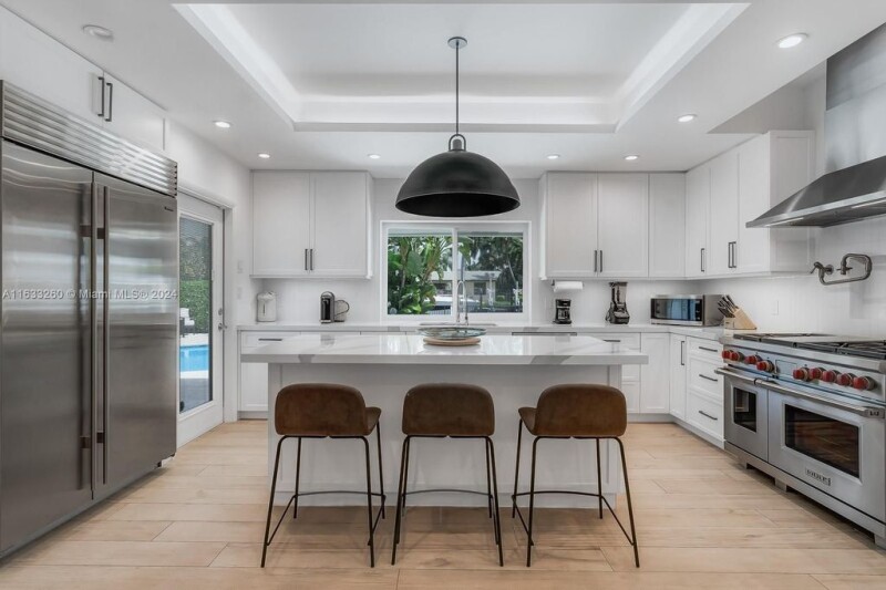 Experience unparalleled luxury in the prestigious Harbor Beach neighborhood. This exquisite 4-bedroom, 4-bathroom home includes an additional office. The top-of-the-line kitchen is equipped with Wolf and Sub-Zero appliances, ideal for culinary enthusiasts. Enjoy peace of mind with impact windows and an aluminum roof. The property features a 95 ft concrete dock, providing direct access to the water. Residents also have exclusive access to a private beach, adding to the appeal of this stunning home. Located in a sought-after area, this residence offers both elegance and comfort, making it a rare find. Don't miss the chance to live in this luxurious oasis!.