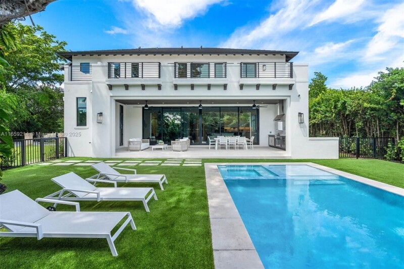 Seller financing available. This newly completed two-story modern estate, designed by Rebecca Pacheco of Ramon Pacheco Architecture, epitomizes contemporary luxury with thoughtful design & premium finishes. Inside, discover refined living spaces & a gourmet kitchen with custom porcelain countertops. The first floor and covered terrace are elegantly finished with Italian-made 48x48 porcelain tiles. A cantilevered oak staircase or elevator leads to the second floor, unveiling oak wood floors, a cozy sitting area & beautifully designed bedrooms, including a resort-style primary suite. This smart home features a summer kitchen, home office, wine gallery, LED lighting, impact-resistant windows. The exterior offers a resort-style pool, gated perimeter & a rare three-car garage near top schools.