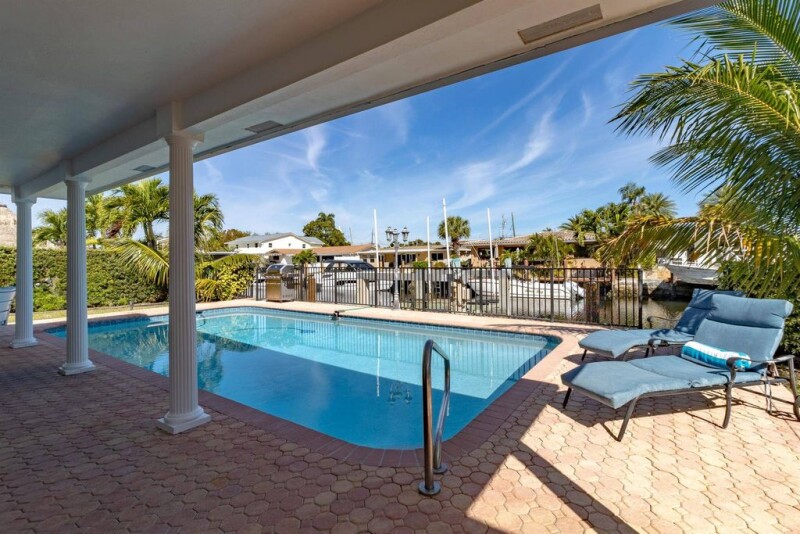 NEWLY RENOVATED - PRICED TO SELL! BRING ALL OFFERS! This is the WATERFRONT home in POMPANO ISLES that you have been waiting for. EAST of Federal, NO FIXED BRIDGES and TOTALLY REMODELED. 3 bedroom/3 bath, garage, and ALL NEW IMPACT make it everything you need to begin FLORIDA LIVING in style. (some staged photos)Manicured, treed lot, wide-designer driveway, covered front porch entry. OPEN CONCEPT w/NEW LUXURY FLOORING and white trim allows the huge living area to be connected to the dining area w/sliders to the pool and covered deck. The kitchen has all new appliances, including the new 4-door Whirlpool Refrigerator! The pool has been redone, the SEA WALL REPAIRED, and the 60' dock has water, electricity, and a 22,000k boat lift.