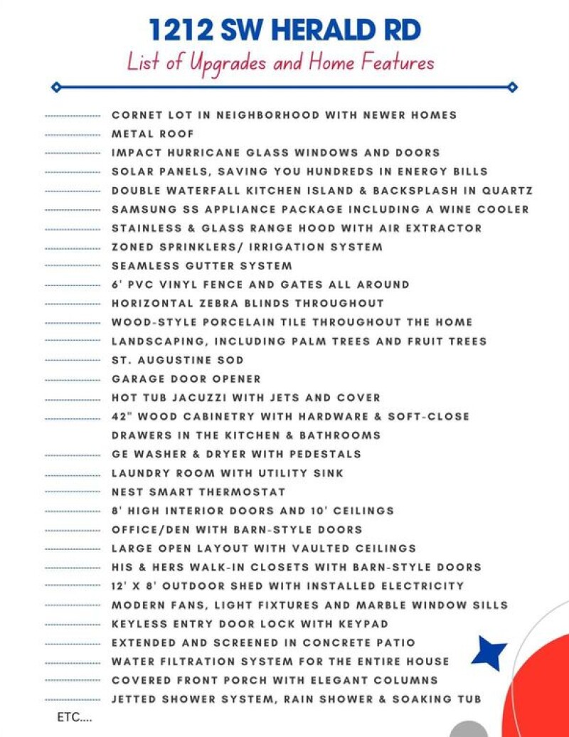 Luxury Custom-Built CBS Home - No HOA Restrictions! Welcome to this stunning 4-bedroom + office, 3-bathroom, 2-car garage home in the highly sought-after Gatlin & Savona area. It is situated on a spacious corner lot and packed with premium upgrades, including: Metal roof, impact windows & doors, solar panels to slash your electric bills, 42'' designer kitchen cabinetry with crown molding, double waterfall kitchen island & backsplash in quartz, stainless steel smart-appliance package including range hood and wine cooler, elegant barn-style closet doors, seamless gutters, gazebo, inviting patio lights. Bright & open layout with 8' interior doors, vaulted ceilings, glass French double-entry doors, and a three-panel patio door for seamless indoor-outdoor living, stylish...