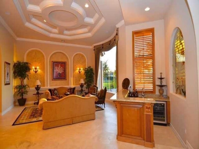 Exquisite Builder's model Home Imagine you pull up to the double porte cochere, a warm & welcoming foyer with water view, crown molding, Gourmet kitchen with all high-end top appliances & gas range, island with breakfast area over looking the pool and lake, baskeball court, interior features, sophisticated movie theater system is included, sound system throughout, wet bar, office room, tray ceiling, over sized dinning room, custom Plantation shutters. Great Master Suite. Fabulous pool with heated spa. Full Accordion shutters on all windows. only 42 homes in this private gated community. The Home Theater could be a 5th bedroom.