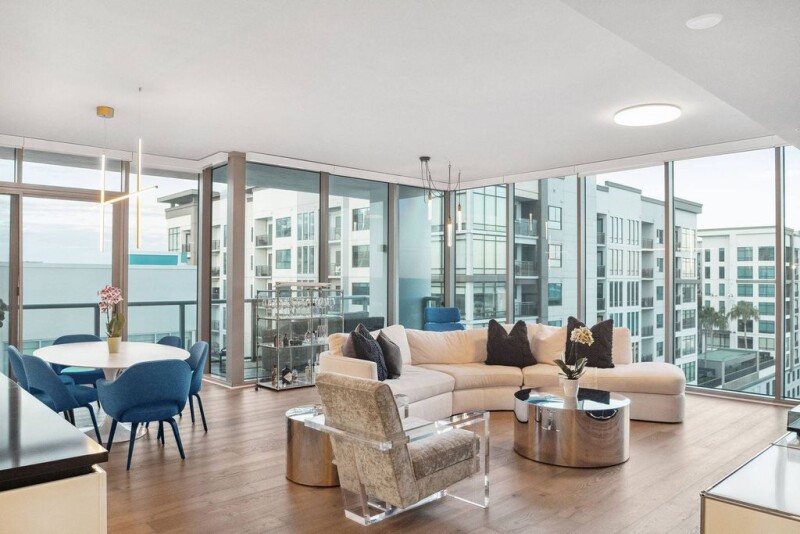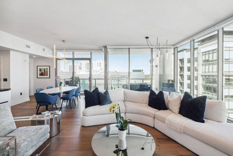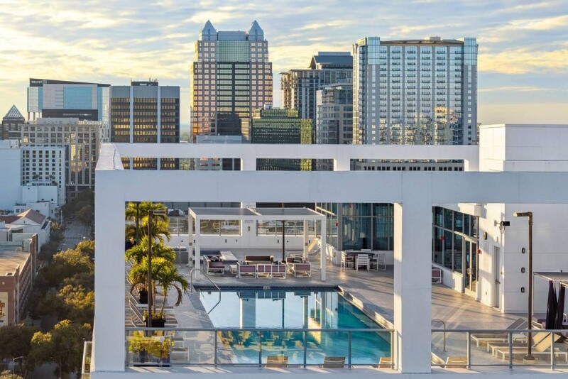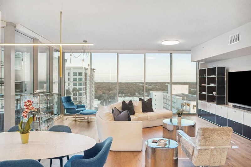 Experience unparalleled luxury in this stunning northeast corner residence on the 10th floor of Star Tower, one of downtown Orlando's most sought-after high-rises. Designed by Ted Maines Interiors, this meticulously reimagined home showcases custom finishes, high-end design and breathtaking unobstructed views to the east from the living room, kitchen and primary suite. Step inside to discover a beautifully redesigned kitchen featuring custom cabinetry, quartz countertops and a uniquely reflective backsplash that mirrors the treetops in the distance. Outfitted with Sub-Zero, Wolf and Miele appliances, this kitchen is a modern culinary masterpiece. Throughout the home, new engineered hardwood flooring, Buster + Punch hardware, switches and outlets, and Flos designer light fixtures elevate the space with a seamless blend of style and functionality. Floor-to-ceiling tinted windows bathe the interiors in natural light while ensuring privacy, complemented by Hunter Douglas motorized solar roller shades in every room. The primary suite boasts a spacious walk-in closet, while the second bedroom also features a large walk-in closet for ample storage. Additionally, the laundry and mechanical closets offer extra storage space for added convenience. This unit includes two side-by-side assigned parking spaces on the fifth floor, a rare and valuable perk in downtown high-rise living. As an added option, all custom furnishings may be available for purchase for a turnkey, designer-curated lifestyle. Star Tower provides 24-hour concierge service, a state-of-the-art fitness center and an exclusive rooftop oasis featuring a resort-style pool, spa and entertainment lounge with panoramic skyline views, the ideal vantage point for fireworks and rocket launches. Just a few blocks away, the charming Thornton Park neighborhood offers a vibrant blend of boho-chic boutiques, organic juice bars and stylish eateries. Meander along Washington Street's European-inspired setting, where a decorative fountain, quaint wine bars, and sidewalk cafés create the ideal ambiance for an afternoon visit or an evening out. Moments from Lake Eola, Dr. Phillips Center, and Orlando's best dining and entertainment, this residence delivers effortless urban living with a touch of timeless elegance. Schedule your private tour today!.