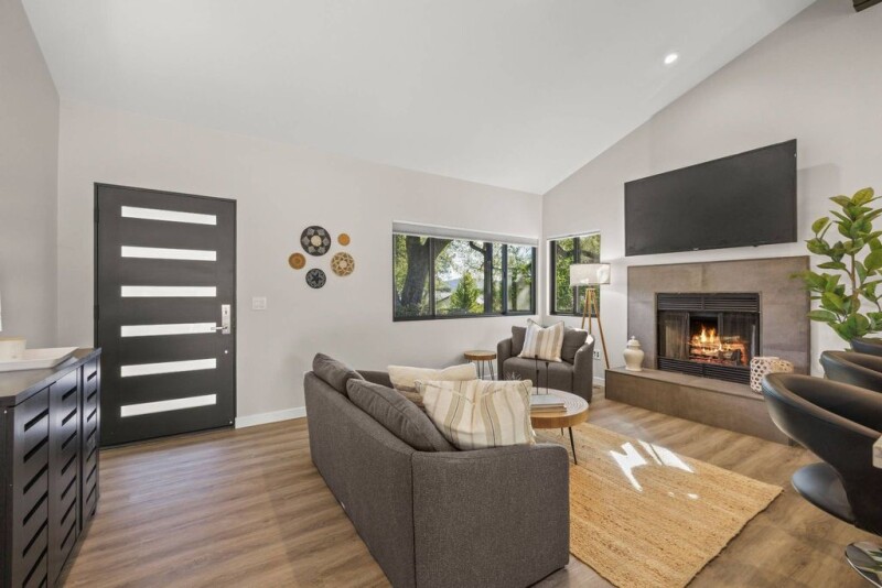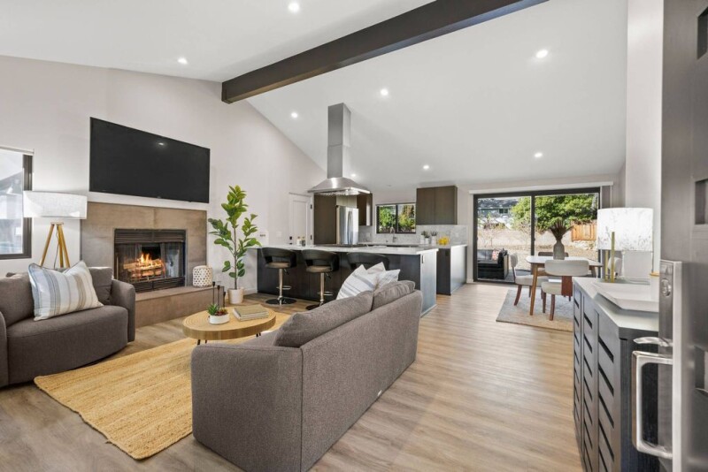 Elegance meets innovation in this newly remodeled home on almost a quarter of an acre! Taken down to the studs and upgraded - from the smooth stucco exterior to the electrical, plumbing, heating/air, and roof - this modern sanctuary is a powerful, functional home nestled among heritage Oaks. It is filled with many graceful interior touches: vaulted ceilings, Anderson windows and sliders, handsome SPC Max and porcelain tile flooring, gorgeous Italian Quartz countertops and custom walnut cabinets and vanities. Entertain in the sprawling backyard beneath the pergola by hosting alfresco meals on the patio or cocktails at the custom bar amid the fruit trees. Retire to the peaceful primary ensuite bedroom, falling asleep to the silence that is Ojai at night. Other amenities include a whole-house water filtration system, closets with built-in shelving, whole-house insulation including the garage, upgraded light fixtures, and weed matting in both the front and back yards. The large lot has the potential for an addition, an ADU, or pool. A home that is both beautiful and truly turnkey at this price is rare. Let's schedule a visit, soon.