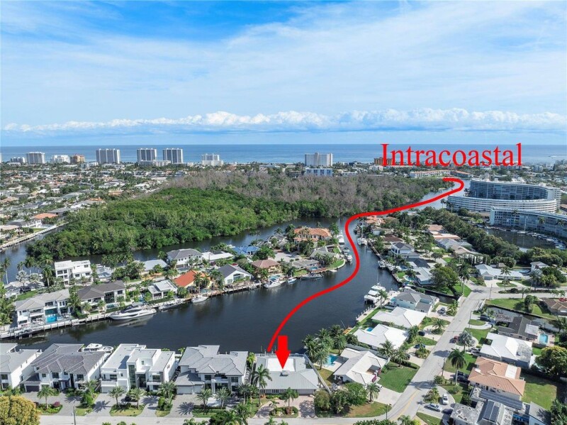 Welcome to Little Harbor Estates an exclusive waterfront community. This home is located in one of the best areas for a yachtsman, proxinity to the ocean is minutess away with no fixed bridges. Enjoy a beautiful view of the Hilsboro River while in your pool sipping a cocktail, Stunning Coastal Contemporary home close to 3300 square feet. 3 large bedrooms and 4 baths. A gorgeous spacious Chefs Kitchen, with new kitchen counter tops and Island. The home features 2 dining rooms formal and informal, 2 living rooms and a cozy fireplace. Enclosed outside patio. Full impact windows. A separate laundry room under A/C. An oversized 2 car garage with a circular drive. Beaches, restaurants, shopping are all within walking distance or a bike ride away. This is the home you have been waiting for!.