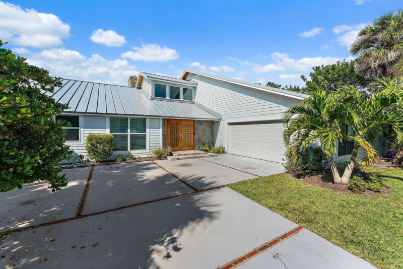 An updated home with a brand new metal roof, located on the lake in a unique community of Olympus. The house boasts large bedrooms, formal living and dining rooms, fireplace, impact windows, bamboo and tile floors! Step into the welcoming foyer to the formal living room with vaulted ceilings and a waterfall wall. The formal dining room is open to the living room and the kitchen, it can be converted into additional bedroom. A full complement of top of the line appliances, and fully retractable impact windows looking out to the lake, heated pool, and lanai. Master suite is oversized with vaulted ceilings. Olympus is located near the beaches of Juno and Jupiter as well as great dining and shopping venues. This home offers a luxurious living experience experience.